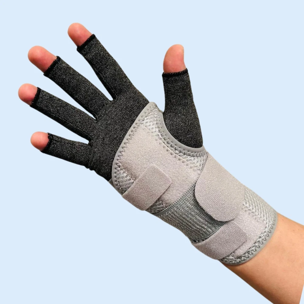 PRODUCTS OVERVIEW WRIST BRACE Multi-Purpose – This wrist support brace is highly effective for managing carpal tunnel syndrome , tendonitis , arthritis , or even a simple wrist sprain or strain . It helps relieve pain , reduce numbness , and ease morning stiffness symptoms for improved comfort throughout the day and night. Metal Splint Support – Designed for superior stability, this brace includes a removable metal wrist splint and two fixed plastic splints. Together, they provide firm wrist support by limiting unintentional bending or twisting during sleep , helping prevent inflammation or nerve compression caused by poor sleeping posture. Adjustable Size – Featuring three adjustable straps with hook and loop closure , this wrist brace for women and men offers a customizable fit for secure compression and stability . The extended design ensures the wrist guard stays in place comfortably—even while sleeping. Night and Day Support – Designed for 24/7 comfort, this carpal tunnel wrist brace night support maintains the wrist in a neutral position while sleeping to prevent nighttime edema and pressure buildup. During the day, it supports joint stability and reduces irritation caused by repetitive movements . ARTHRITIS GLOVES Targeted Hand Pain Relief Find relief from arthritis pain, joint stiffness, and hand swelling with our cotton compression gloves for arthritis . Designed to gently conform to the natural shape of your hands , these gloves provide targeted compression therapy that helps reduce discomfort from rheumatoid arthritis, osteoarthritis, musculoskeletal pain, and everyday joint strain . Ideal for improving mobility and easing pain during daily activities. Enhanced Grip & Full Dexterity Available in 2 different sizes , our fingerless arthritis gloves offer a snug, custom fit while maintaining flexibility. The cotton-enhanced material improves grip strength, while the open-finger design allows for a full range of motion. The optimally placed finger openings provide effective compression without limiting mobility, giving you the perfect balance of support and freedom. Breathable & Temperature-Regulating Fabric Made with a premium blend of 44% cotton, 44% polyester, and 12% spandex , these gloves are lightweight, breathable, and comfortable for all-day wear. The fabric is temperature regulating – it retains gentle heat to soothe aching joints while preventing excess sweat, making it perfect for use at home, at work, or on the go. Smart Stitching for Long-Lasting Comfort Upgraded with durable smart seam stitching , our compression gloves reduce irritation and eliminate pressure points. The carefully designed seams, including around the thumb and fingers, ensure greater comfort and long-lasting wear without friction. Easy to Wear & Maintain The stretchy open-finger design makes these gloves easy to slip on and take off. Plus, they are machine washable , making care simple and hassle-free. With their durable construction and therapeutic benefits, our arthritis compression gloves are the perfect solution for anyone seeking pain relief, hand support, and improved mobility .