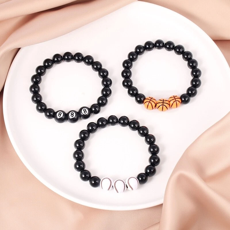 Wristbands Imitation Beads Accessories for Teens Adults Gifts Features: and high It is glass, acrylic material and is a sports jewelry. Beautiful precious imitation beads You can wear it every day and not worry about it breaking. looks great on either men or women. If you have any questions, please feel to us. Specifications: Color:Black Glass, Acrylic Black Beads:Approx.10mm/0.39in Basketball:Approx.11mm/0.43in Volleyball:Approx.11mm/0.43in Chain Circumference:Approx.20cm/7.87in Quantity:1pc Package Includes: 1x A/B/C note: Please allow a little error on the size due to manual measurement. The color might exist slightly difference due to different displays.