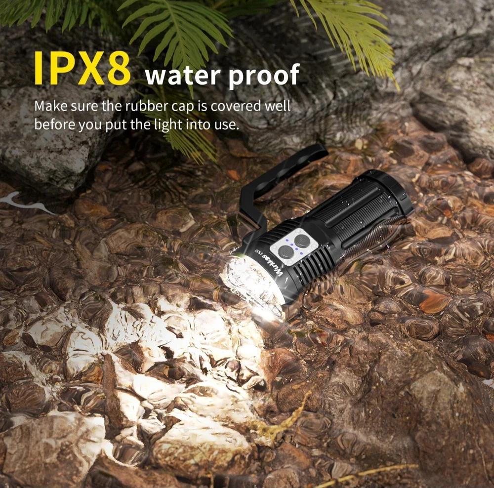 New Wurkkos TS32 Flashlight comes in original packaging. Comes with x1 Flashlight, x2 Spare O rings, x1 handle, x1 charging cable, x1 manual. (BATTERIES NOT INCLUDED) Message me about including batteries if needed for a small additional fee More specifications in the last photo Next day shipping from Minnesota. TS32 delivers a maximum output of, 13000 lumens with a maximum range of 590 meters . TS32 Come with 12 pieces around Floodlight High CRI LEDs and 1 pieces Middle spotlight LED , has double side switches to controls each beam,It also provides an improved, user friendly interface and simple one-hand operation. It is powered by triple 21700 Li-ion rechargeable battery and it is rechargeable via USB-C as well as Reverse charging for optimum convenience. The flashlight features two mode groups: Group 1 with stepped modes and Group 2 with a stepless ramping mode. Specifications Emitter: (High CRI) 12* LH351D 5000k +1* Luminus SFT40 Reflector: Smooth reflector Driver: FET circuit(floodlight)+Buck constant current circuit(Spotlight) Beam angle:spotlight 7°, floodlight 78° Operating voltage: 2.7V – 4.2V Battery options: 3* 21700 Li-Ion battery Dimension: 132.4mm (length) x 62.4mm (head diameter) Weight: 435 ±1 grams (without battery) Flashlight body: Aerospace grade 6061 grade aluminum alloy, CNC manufactured to hard-anodized to military grade specification type III, anti-abrasive finish to get solid built body, anti-crash geometry and better heat exchange. Toughened mineral glass lens Water resistance i.a.w. IP68 Mode Memory: memorizes the last brightness level used in the general modes (except Strobe) Reverse polarity protection to protect against improper battery installation. Advanced Temperature Regulation (ATR) technology: ATR will reduce the brightness level automatically when the driver temperature reaches 55℃ to prevent overheat