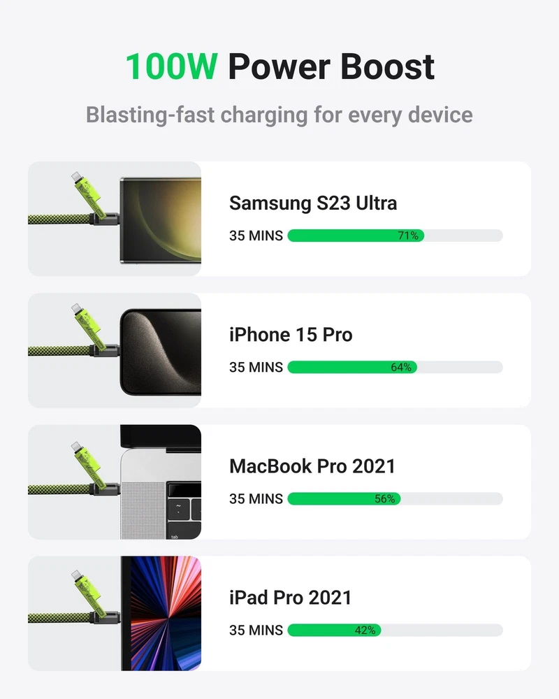 XCOOL USB C Cable, 4-in-1 USB-C Cable (6ft), 100W USB-C Charger Cable with Hook-and-Loop Fastener and Cable Management, USB-C Cable/Fast Charging for MacBook, iPad, iPhone, Samsung, Green Versatile 4-in-1 Design: Simplify your charging setup with our versatile 4-in-1 usb-c cable. Charge and sync your devices without the hassle of switching between multiple cables. Multi-Device Charging Solution: Universal compatibility for all your charging needs with USB-A, USB-C, Fast-charging connectors and power adaptor adaptability. For example, iPhone 14/14 Plus/14 Pro/14 Pro Max/iPhone 13/13 Mini/13 Pro/13 Pro Max/iPhone 12/12 Mini/12 Pro/12 Pro Max/iPhone 11/SE Series; iPad Pro/Air/Mini; MacBook Pro 14"/MacBook Pro 16"/MacBook Air/MacBook Pro 13"; AirPods Series; Apple Watch Series; Galaxy S22/S22+/S22 Ultra/S21/S21+/S21 Ultra/S20/Note20; Switch, etc. 100W USB-C Fast Charging Cable: Power up your MacBook Pro 2021ʺ from 0% to 50% in just 30 minutes—that’s 42% faster than with a 60W charger and cable. (Charger not included). Built to Last USB-C Cable: Combined with zinc alloy and nylon braided for a 100,000-bend lifespan, the tough usb-c cable is durable both inside and out. Whether you need to wrap it around your device or tuck it away neatly, our resilient and reliable usb-c cable can handle it all. Charge Without Taking Case off: Our intentional 2mm connector extension design enables easy charging without removing your case and protects both USB-C and Fast-charging connectors. High-Speed Data Transfers: Transfer movies, music, or more in seconds with 480 Mbps transfer speeds. Versatile 4-in-1 Design: Simplify your charging setup with our versatile 4-in-1 usb-c cable. Charge and sync your devices without the hassle of switching between multiple cables. Multi-Device Charging Solution: Universal compatibility for all your charging needs with USB-A, USB-C, Fast-charging connectors and power adaptor adaptability. For example, iPhone 14/14 Plus/14 Pro/14 Pro Max/iPhone 13/13 Mini/13 Pro/13 Pro Max/iPhone 12/12 Mini/12 Pro/12 Pro Max/iPhone 11/SE Series; iPad Pro/Air/Mini; MacBook Pro 14"/MacBook Pro 16"/MacBook Air/MacBook Pro 13"; AirPods Series; Apple Watch Series; Galaxy S22/S22+/S22 Ultra/S21/S21+/S21 Ultra/S20/Note20; Switch, etc. 100W USB-C Fast Charging Cable: Power up your MacBook Pro 2021ʺ from 0% to 50% in just 30 minutes—that’s 42% faster than with a 60W charger and cable. (Charger not included). Built to Last USB-C Cable: Combined with zinc alloy and nylon braided for a 100,000-bend lifespan, the tough usb-c cable is durable both inside and out. Whether you need to wrap it around your device or tuck it away neatly, our resilient and reliable usb-c cable can handle it all. Charge Without Taking Case off: Our intentional 2mm connector extension design enables easy charging without removing your case and protects both USB-C and Fast-charging connectors. High-Speed Data Transfers: Transfer movies, music, or more in seconds with 480 Mbps transfer speeds. Shipping from the USA All of our products are shipped from the USA, ensuring quick delivery to your destination. Payment We offer the following payment methods: PayPal, credit card, bank transfer, and eBay's secure payment system. Free Shipping & Free Returns Shipping within the USA is FREE. Additionally, any return is absolutely free for you. Risk-Free Purchase You have the option to return an item within 30 days without any justification. We cover the return shipping costs! Fast Shipping We ship immediately upon receipt of payment. Generally, the package is delivered within 2-3 days in the USA. If it takes longer, we will contact you. Quality and Costs Made in Europe, USA, China No customs fees or additional charges Total satisfaction guarantee Invoice with declared VAT available upon request in .pdf format Feedback Your feedback is very important to us. After you pay for your purchase, you will automatically receive positive feedback from us.