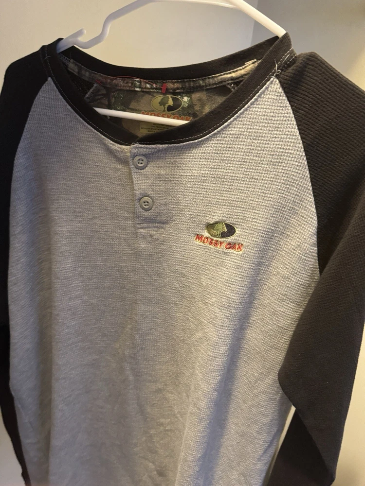 XL Mossy Oak Longsleeve Black Grey Gray Camo Shirt Hunting Outdoor Sportsman $1