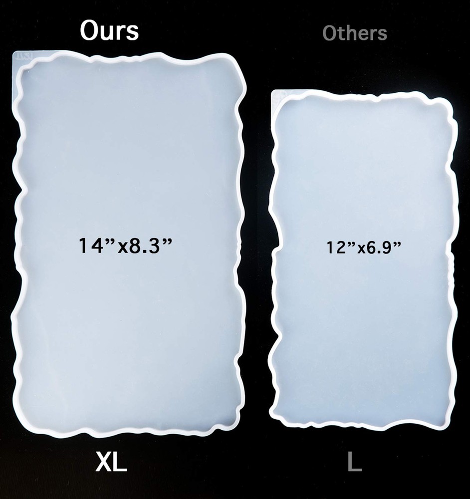 Why Choose ? Package comes with 1 Pcs Geode Agate Platter Mold and 2 Pcs Gold Handles along with an A3 extra large silicone mat (15.8 x 11.7 inches) to keep your craft table away from resin, epoxy, glue, glitter, paint, ink, oil, scratches etc., Made of high quality silicone, these epoxy resin molds are soft, thick and flexible, well resistant to tearing, hard to deform and fade, washable, pretty durable and reusable. You just need to twist the mold and release your creations when the resin is completely cured.The finished products are very shiny and scratch-free. Wash resin molds with warm soapy water after use and keep them away from heat and dust. Perfect DIY casting resin mold for making various faux agate serving tray, geode serving board, decorative home ornaments etc. How to Make a Resin Serving Board: 1. Pour resin into measurement cup, slowly stir to release bubbles. Adding any element like glitter, mica , liquid resin dye, dried flowers if you want. 2. Pour it into your mold and put the handles onto the appropriate position before the epoxy cured. 3. After for 24-48 hours, when resin completely solidify, you can release the resin out, and the beautiful sparkle tray is done. What You Get: 1 Pcs Geode Agate Platter Mold & 2 Pcs Gold Handles with an A3 extra large silicone mat (15.7 x 11.7 inches) to keep your craft table away from resin, epoxy, glue, glitter, paint, ink, oil, scratches etc., Agate Tray Molds: You could easily use our silicone resin molds to create natural and sparkly resin geode agate serving tray. MOLD SIZE:8.3x14x0.4inch. Wide Applications: These silicone molds for resin can be applied to make various faux agate serving tray, geode serving board, decorative home ornaments etc. Easy Demold Easy Clean: With our Resin casting molds made of premium quality silicone with features of thick, flexible and reusable, you just need to twist the mold and release your creations after the resin is completely cured. Wash resin molds with warm soapy water after use and keep them away from heat and dust. Warm Tip:1)The tray molds are suitable for casting resin only, not for coating resin. 2)The torch and heat is not recommended to use as the heat will damage the mold. 3) Put the handles on appropriate position before the epoxy gets thick(no screws needed).