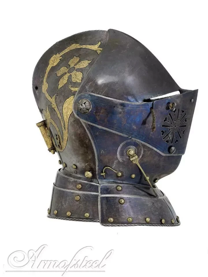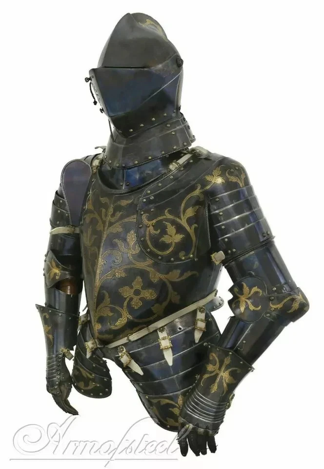 ITEM DESCRIPTION FROM THE SELLER Best Christmas, Halloween Party & Gift Item Material - High Quality Steel & Brass Set includes: - Helmet - Cuirass - Gorget - Pauldrons - Full Hand Armor - All Items Are Include As Shown In Pictures Every Armor set is custom-fit according to your measurements.
