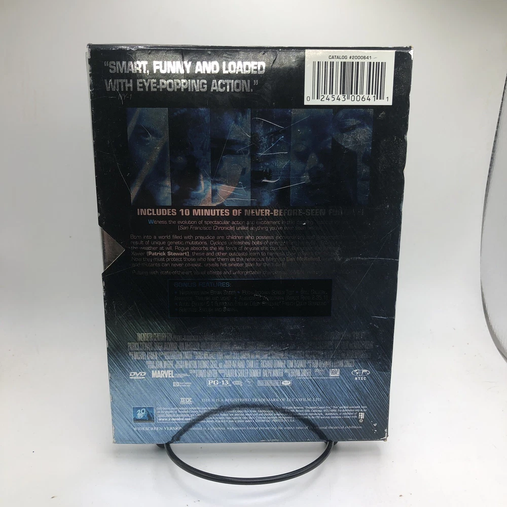 Format: DVD Type: Movie Franchise: X-Men Region Code: DVD: 1 (US, Canada...) Release Year: 2000 Language: English Genre: Sci-Fi & Fantasy Director: Bryan Singer Country/Region of Manufacture: United States Actor: Patrick Stewart, Hugh Jackman, Ian McKellen Movie/TV Title: X-Men Case Type: Tall/DVD Case Seller Notes: “Please see photos. All USED Movies will have some minor scratches and blemishes on cases.” UPC: 0024543006411 Edition: Sensormatic gtin13: 0024543006411 Rating: PG-13