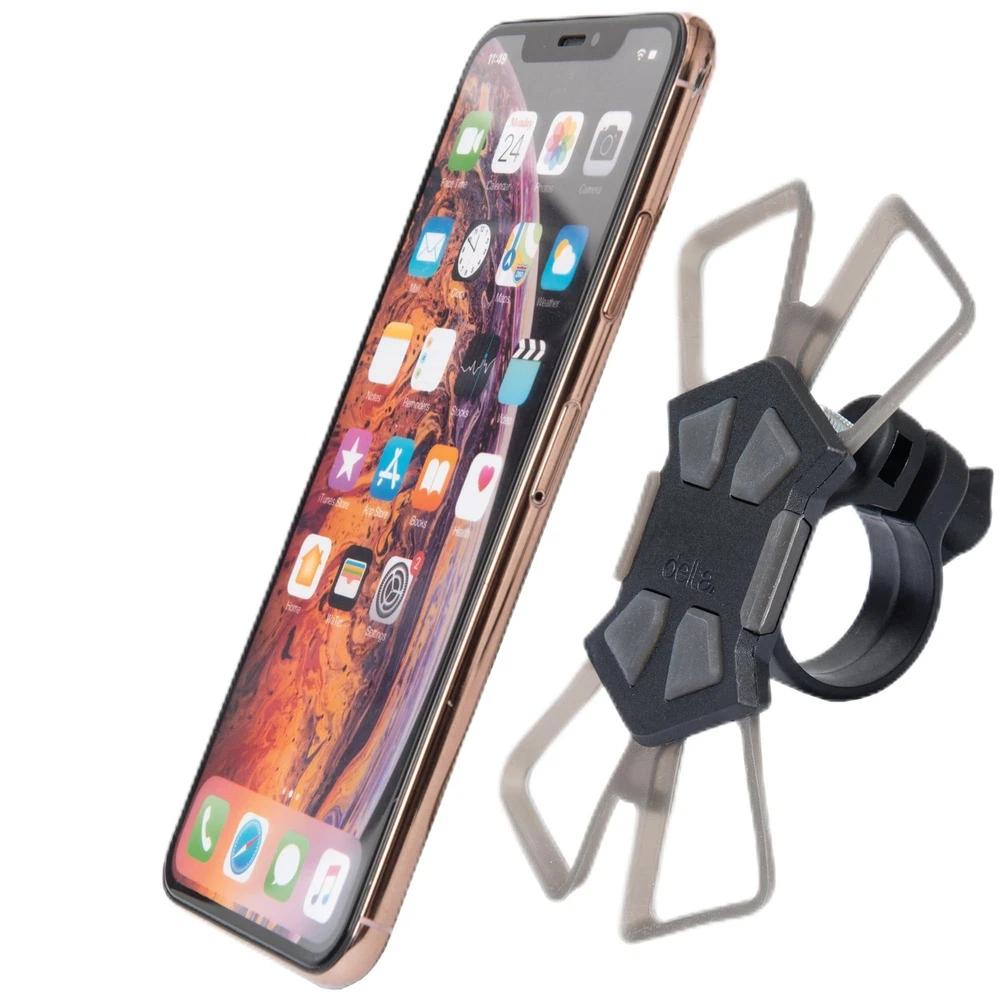 Elevate your cycling experience with Delta's X Mount 360—a versatile bike phone holder designed for enthusiasts and casual riders alike. This phone holder for bike is the ideal accessory for your biking adventures, providing a secure and stylish solution for holding your phone on the handlebars. Whether you're looking for a reliable phone holder for your bike, an essential ebike accessory, or a universal bike phone mount suitable for adult bikes, the X Mount 360 has you covered. Its universal compatibility ensures a snug fit for any device, offering the flexibility you need for your cycling journey. Unlike traditional bike phone holders, the X Mount 360 goes beyond expectations. It's not just a handlebar phone mount; it's a companion that adapts to your lifestyle. The X Mount 360 is the go-to solution for riders seeking convenience and flexibility. Say goodbye to limitations with the X Mount 360's 360-degree rotation feature. Whether you prefer landscape or portrait orientation, this bike cell phone holder provides the flexibility you need to access cycling apps, trackers, and maps on any terrain. As a versatile stroller phone holder, the X Mount 360 transcends the realm of traditional bike accessories. Its stretch fit design ensures easy in and out access to your device, allowing you to focus on the ride without the hassle of fumbling with your phone. Join the ranks of satisfied riders who trust Delta's bike phone holders. Our commitment to quality and innovation sets us apart from the competition, making the X Mount 360 a preferred choice among users seeking a reliable cell phone holder for bikes. If you’re searching for the best bicycle phone holder handlebar solution, the X Mount 360 surpasses expectations. Its sleek design and durable construction make it a standout choice among bicycle accessories for adult bikes. Bike Phone Holder: Elevate your cycling experience with Delta's X Mount 360—boasting a sleek, aerodynamic form factor that outshines others. The perfect blend of style and functionality. Universal Compatibility: Secure any device effortlessly. Our bike phone mount accommodates all device sizes and cases, ensuring you don't compromise your personal style for functionality. Truly universal convenience. Ultra-Light Performance: Redefine lightweight with our ultra-light thermoplastic construction. Counting grams matters for enthusiasts, and our bicycle phone mount keeps your bike agile without sacrificing durability or security. 360-Degree Freedom: Enjoy landscape or portrait orientation with a simple twist. The X Mount 360 rotates seamlessly, giving you the flexibility to use cycling apps, trackers, and maps on any terrain. Sturdy Assurance, Tool-Free Setup: Bid farewell to concerns about sturdiness. Our bike phone holder handlebar provides a secure hold with tool-free installation. Integrated silicon bumpers reduce vibration and keeps your device protected, even on rough rides.