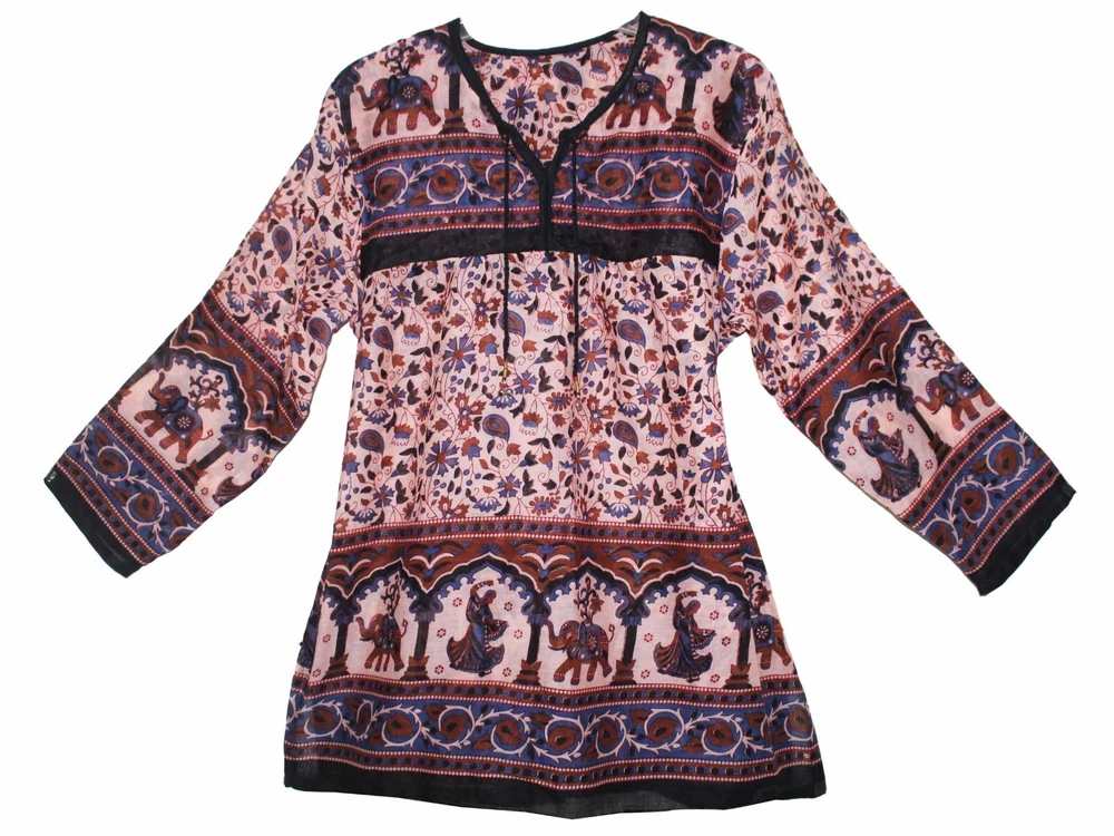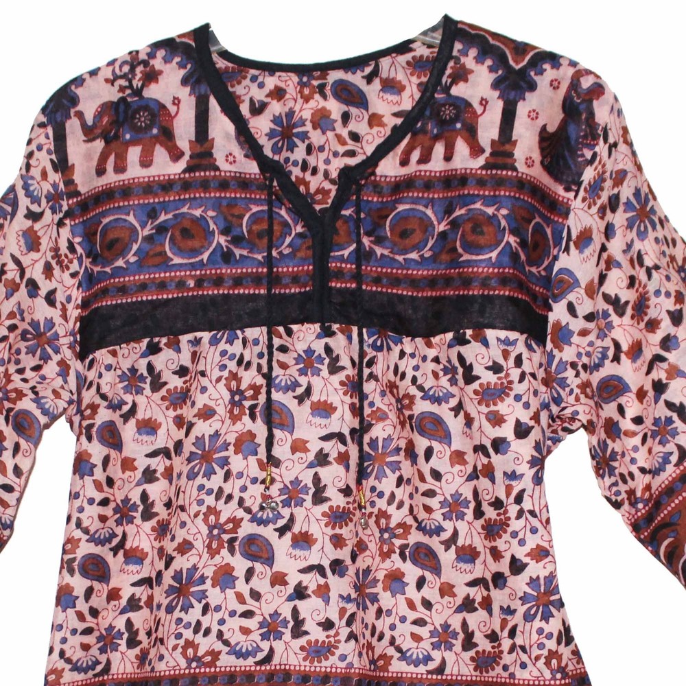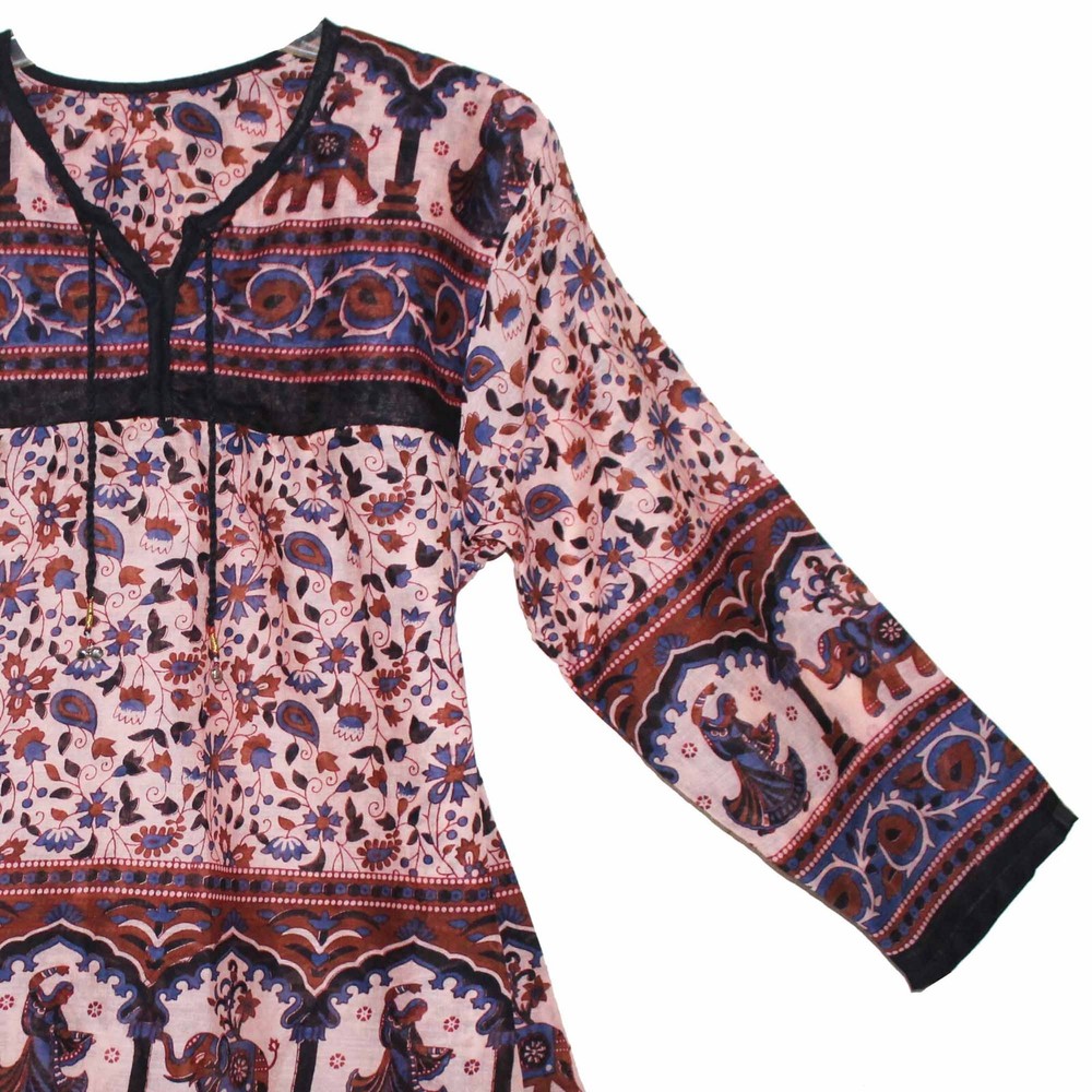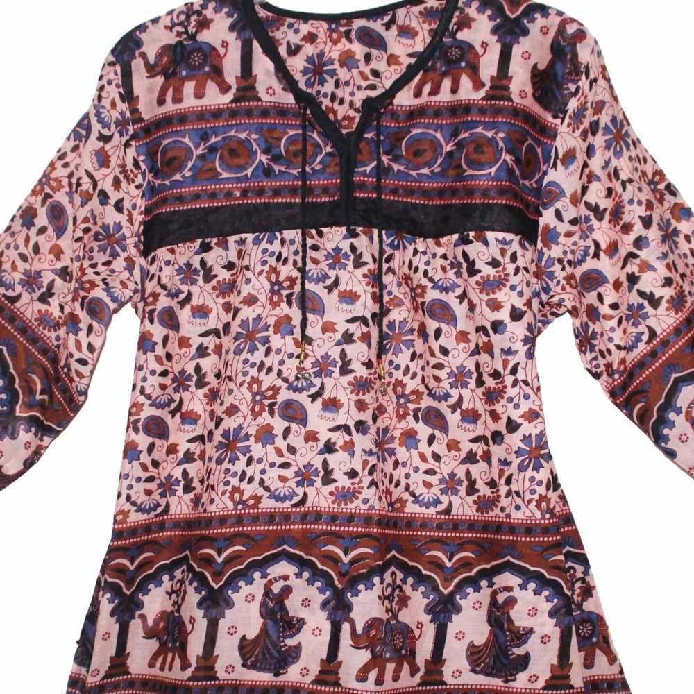 Description:- 100% Cotton Beautiful Blouse Ethnic And Vintage Look Pattern And Print Brand New For You (Not Real Vintage) 100% Cotton Maya Blouse/ Top/tunic/ Kurta With Strings Length = 28 Inch Bust = 40 Inch (Xs/s/m/l) Armhole = 10 Inch Sleeve Length = 18 Inch Free Size For Xs / S / M / L