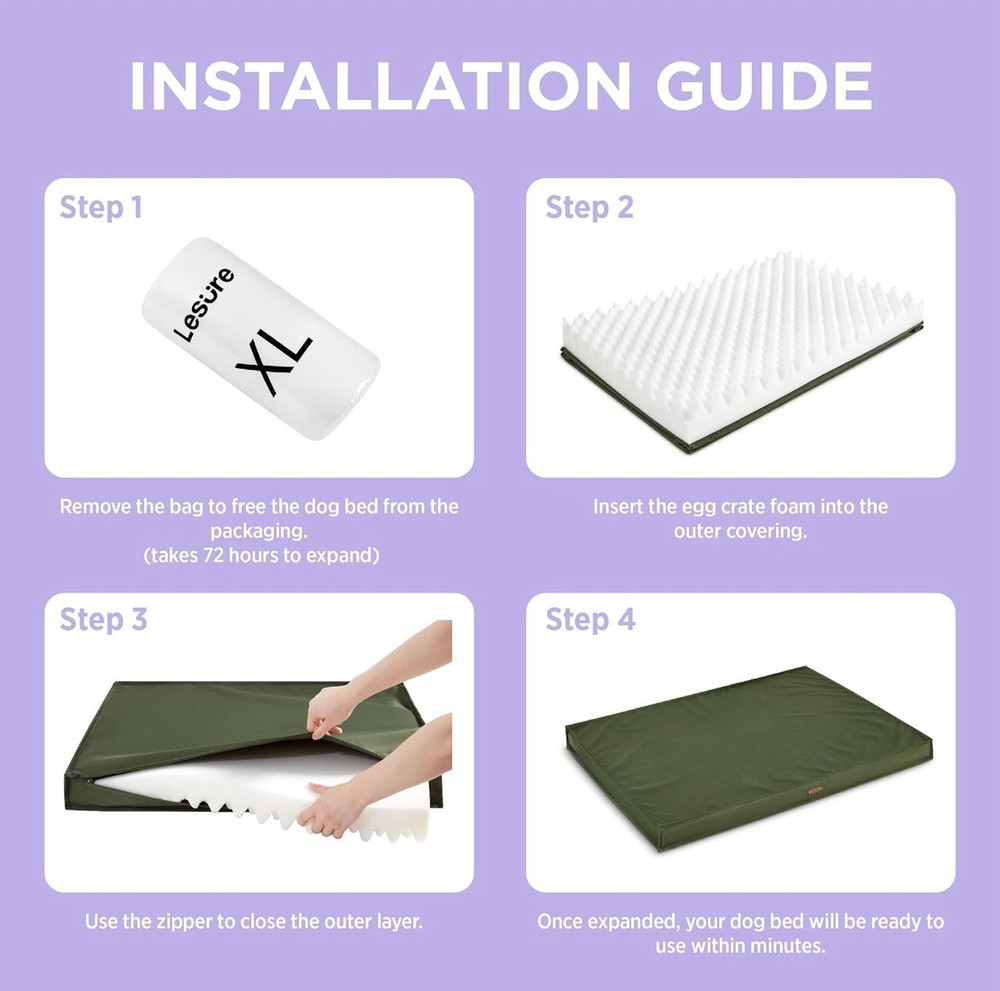 Give your furry friend the comfort they deserve with this Lesure Orthopedic XXL Dog Bed in olive green. Perfect for extra-large breeds, this bed features high-density foam support and a waterproof Oxford fabric surface for outdoor or indoor use. • Condition: Open box – like new. The item has been opened for inspection but is unused and in excellent condition. • Color: Olive Green • Dimensions: 48 x 30 inches • Features: • Waterproof & removable cover • Orthopedic foam for joint support • Durable Oxford fabric – ideal for indoor/outdoor use • Machine-washable cover • Great for large and extra-large dogs like Huskies, Labradors, and German Shepherds. Ships securely packed. Satisfaction guaranteed!