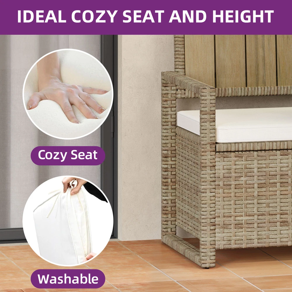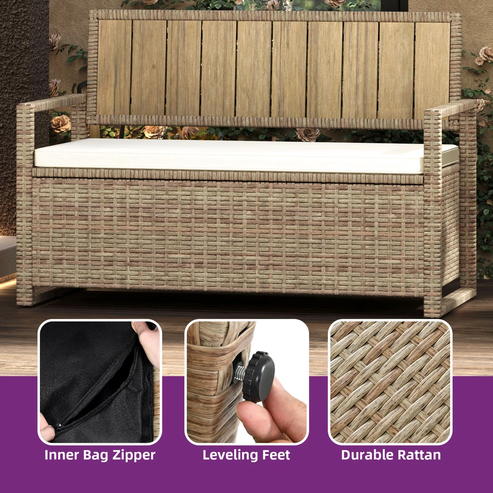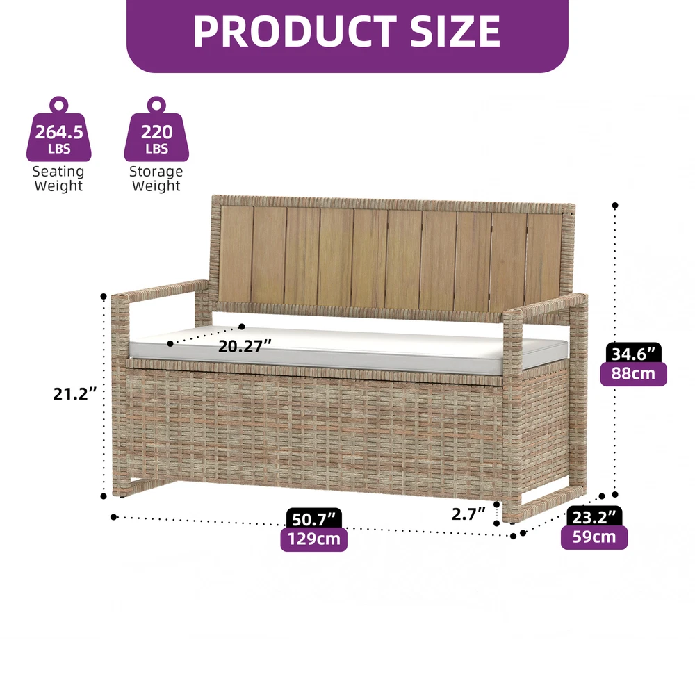 Product Description Specifications: Material: Rattan Size of Storage bench: 50.7"D x 23.2"W x 34.6"H Frame Material: Steel Seating Capacity: 2 UV Resistant: Yes Cushion Included: Yes Assembly Required: Yes Room Type: Outdoor, Garden, Beach Maximum Load Capacity: 264.55 lbs Item Weight: 55.99 Pounds Package Included: 1x Outdoor Storage Box 1x Instruction Manual Book Product Details Shipping 1.The shipping rates listed are only for residential or commercial destinations in the continental 48 United States. All international sales will go through eBay Global Shipping Program.please ask us if there are any questions. 2.We only ship the item to the address that is sent to us at the time of checkout. Please verify the correct shipping address in your PayPal account before making your payment. If we ship your item to an old or invalid address and you are not able to locate the item, we are not responsible for shipping a replacement. 3.Currently, we do not ship to Hawaii, Alaska, Puerto Rico,APO/FPO/PO Boxes. 4.We use USPS, UPS & FedEx as shipping method. 5.Payments cleared before 12 PM PST, will be shipped on the same day. Payment 1.We accept PayPal and all forms of credit card. 2.We will only ship to the confirmed Paypal shipping address given with the payment. 3.We do not offer local pick up service. Return 1.30 days Money Back Guarantee. 2.If any package that needs to be returned, please contact our customer service first to receive a RMA form. 3.All return items MUST be in brand new condition. About Us 1.Specialized in aftermarket auto parts since 2012, we source and work directly with professional manufacturers to provide the highest quality parts at the most economical prices. 2.We also has over 5 years of shipping experience with FedEx and USPS . Our Packing Quality is Guaranteed , Item Ship-ping is timely! On Feb 17, 2025 at 03:34:26 PST, seller added the following information: