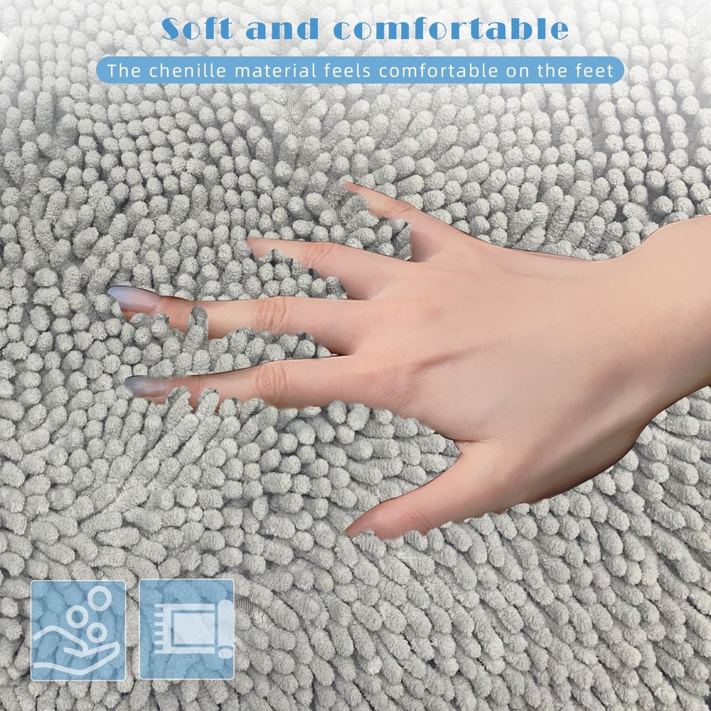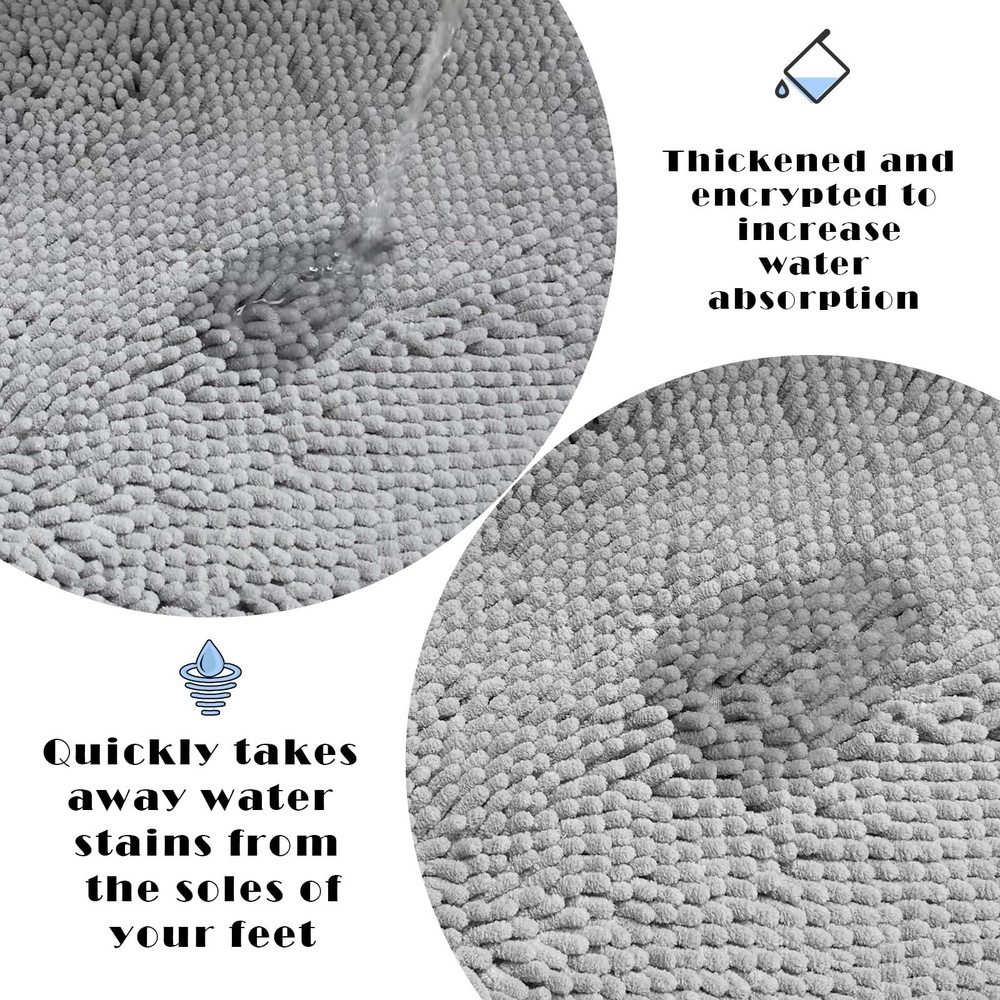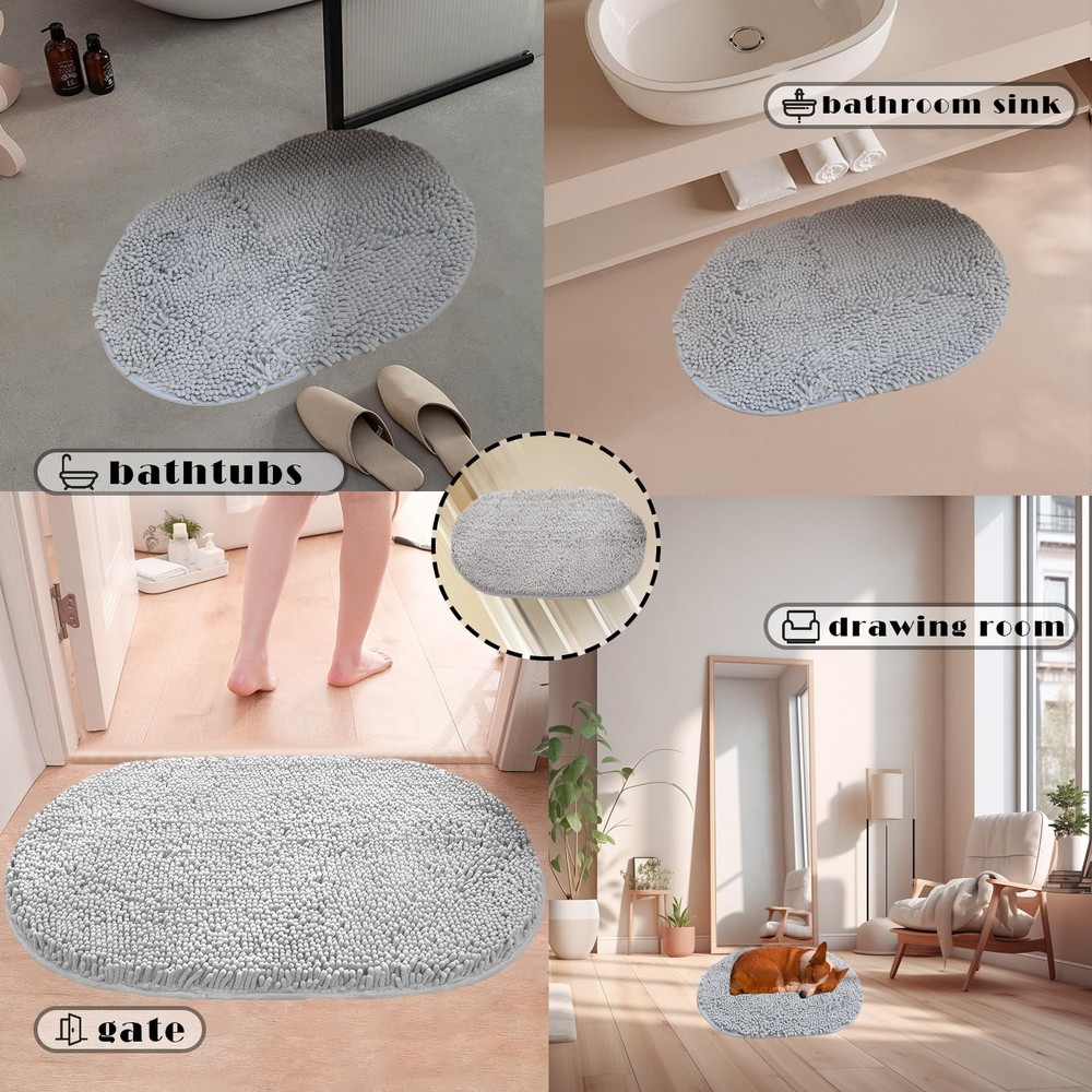 Introducing our oval chenille bathroom rugs, the ultimate addition to your bath decor! Crafted with durability and comfort in mind, our chenille rugs are made of high-quality chenille microfiber that provides a soft and fluffy feel for your feet. The anti-slip bottom keeps you safe while stepping out of the shower, making it an ideal choice for families with kids and seniors. Our oval chenille bath mat is easy to clean and quick-drying, making it convenient for daily use. It's also fade-resistant, ensuring long-lasting use while maintaining its vibrant colors. The simple yet fashionable design complements any bathroom decor style, while also offering a multi-purpose use. The chenille bath mats are perfect for placing in front of the sink, bathtub, shower, stairs, laundry room, pet house, pet rug, balcony or even at the doorway. Our absorbent chenille pet mat is not only stylish, but also skin-friendly – making it perfect for those with sensitive skin. We've also made sure that the soft chenille oval bath mat is free from shedding, ensuring a clean and mess-free bathroom. Overall, the coral bathroom rug is the perfect combination of comfort, durability, and style. Order your ultra soft microfiber shaggy oval rug pad today and elevate your bathroom experience to the next level! SUPER ABSORBENT: The Oval Chenille Bathroom Rug is designed to absorb water quickly, keeping your bathroom floor dry and slip-resistant. Almost tens of thousands of microfiber fleeces prevent water from dripping onto the floor, so you won't get water on your feet when you leave the bathtub. They quickly absorb water from your feet and the water won't stay on the surface of the bathroom pad. NON-SLIP BACKING: The oval foam rug features a non-slip backing from high-quality TPR that keeps it in place, preventing slips and falls in the bathroom. Do not place the oval bathroom rugs on a wet surface. Make sure the floor underneath the Chenille shower rug is dry to prevent slipping. ULTRA SOFT AND COMFORTABLE: Made with ultra-soft microfiber shaggy material, the high-pile chenille bath mat is incredibly comfortable underfoot, perfect for stepping out of the shower or tub. Our toilet mat has 1.18 inches of plush to keep you warm on cold floors and cushions your feet very effectively when you step on it. MACHINE WASHABLE AND QUICK DRY: The oval bath mat is easy to clean and can be machine washed and tumble dried on low. It dries quickly, making it ready for use in no time. The ultra-soft microfiber material remains durable and sleek even after many washes. VERSATILE USAGE: Our 16''×24''(40cm×60cm) and 20''×32''(50cm×80cm) chenille bath rugs comes in the perfect size and shape to fit anywhere, it is not only perfect for the bathroom floor, but also suitable for the bedroom, living room, kitchen, vanity, vacation home master bedroom, kids' bathroom, door entrances and other locations. This funky toilet rug makes a perfect gift for anyone looking to add some style and comfort to their bathroom. Its perfect blend of quality, design, and functionality makes it a must-have item.