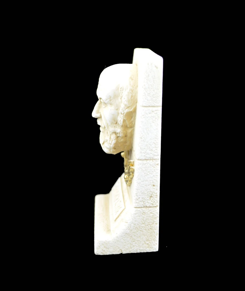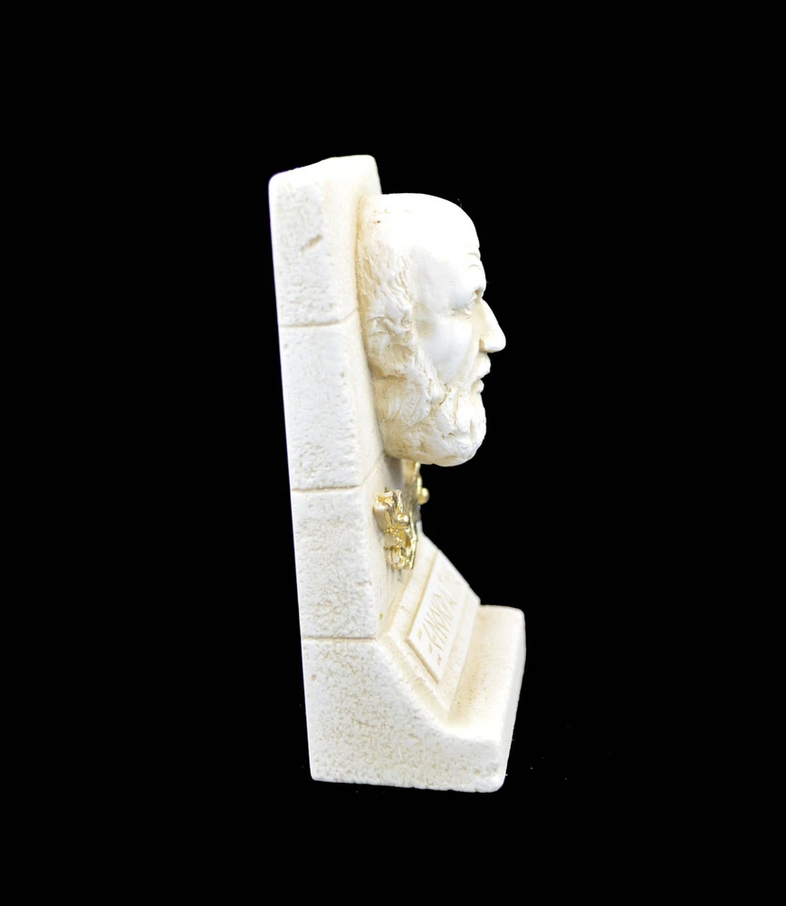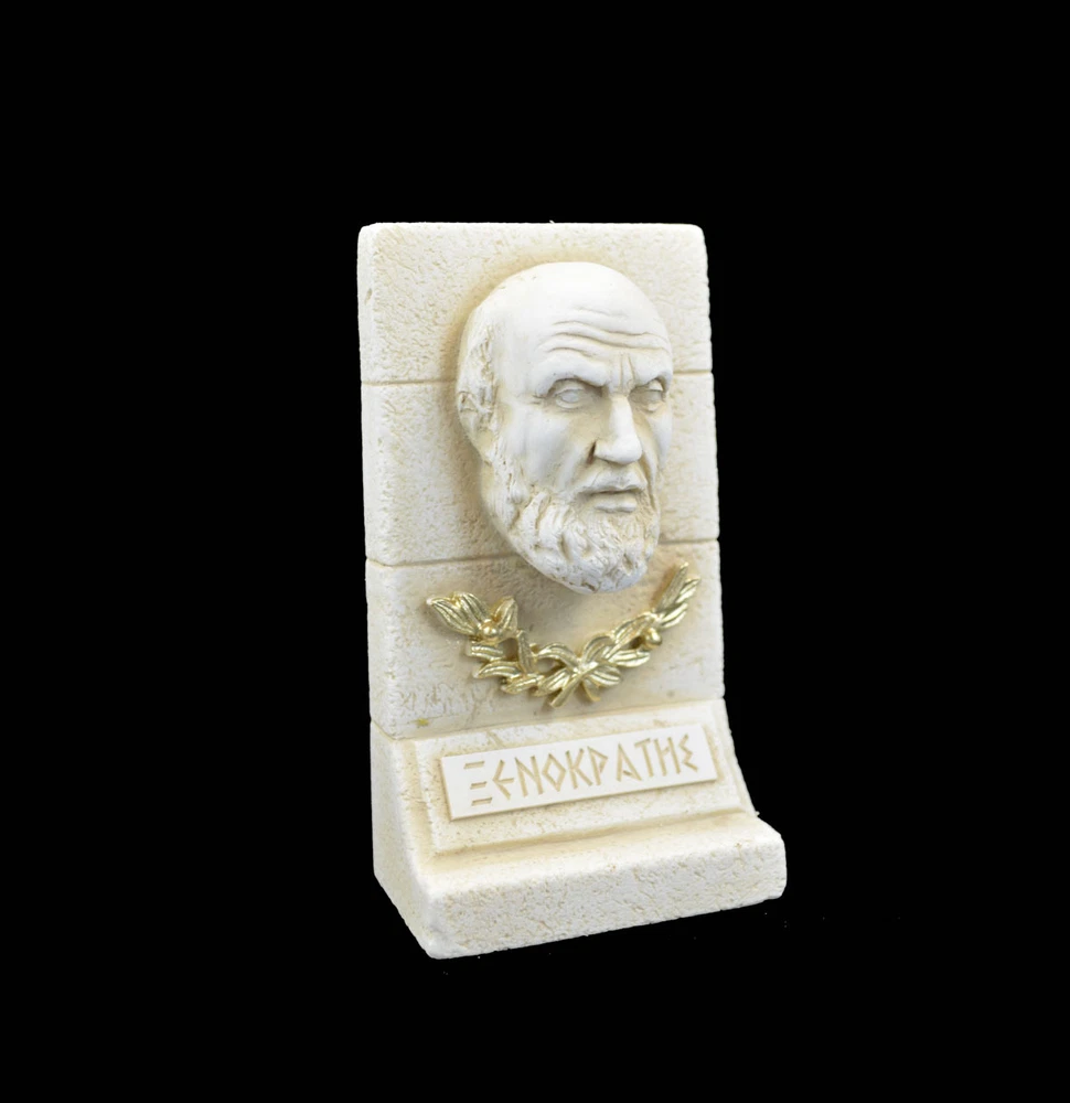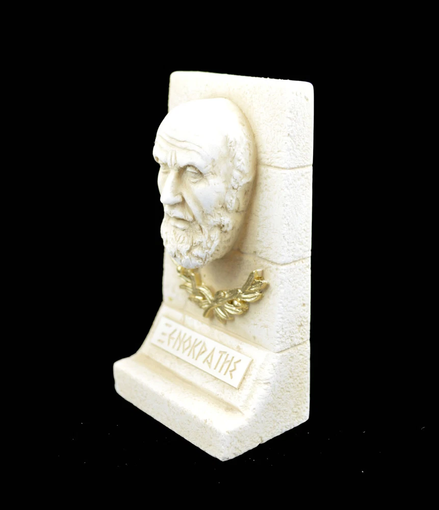 Xenocrates (Greek: Ξενοκράτης; c. 396/5 – 314/3 BC[1]) of Chalcedon was a Greek philosopher, mathematician, and leader (scholarch) of the Platonic Academy from 339/8 to 314/3 BC. His teachings followed those of Plato, which he attempted to define more closely, often with mathematical elements. He distinguished three forms of being, the sensible, the intelligible, and a third compounded of the two, to which correspond respectively, sense, intellect and opinion. Unity and duality he considered to be gods which rule the universe, and the soul is a self-moving number. God pervades all things, and there are daemonical powers, intermediate between the divine and the mortal, which consist in conditions of the soul. He held that mathematical objects and the Platonic Ideas are identical, unlike Plato who distinguished them. In Ethics, he taught that virtue produces happiness, but that external goods can minister to it and enable it to effect its purpose. (03 00 030) Tracking number provided!!! Details: Condition: New, made in Greece. Approximately Height: 10cm - 3.9 inches Width : 6cm - 2.3 inches Weight: 220g Material: Alabaster patina aged ********