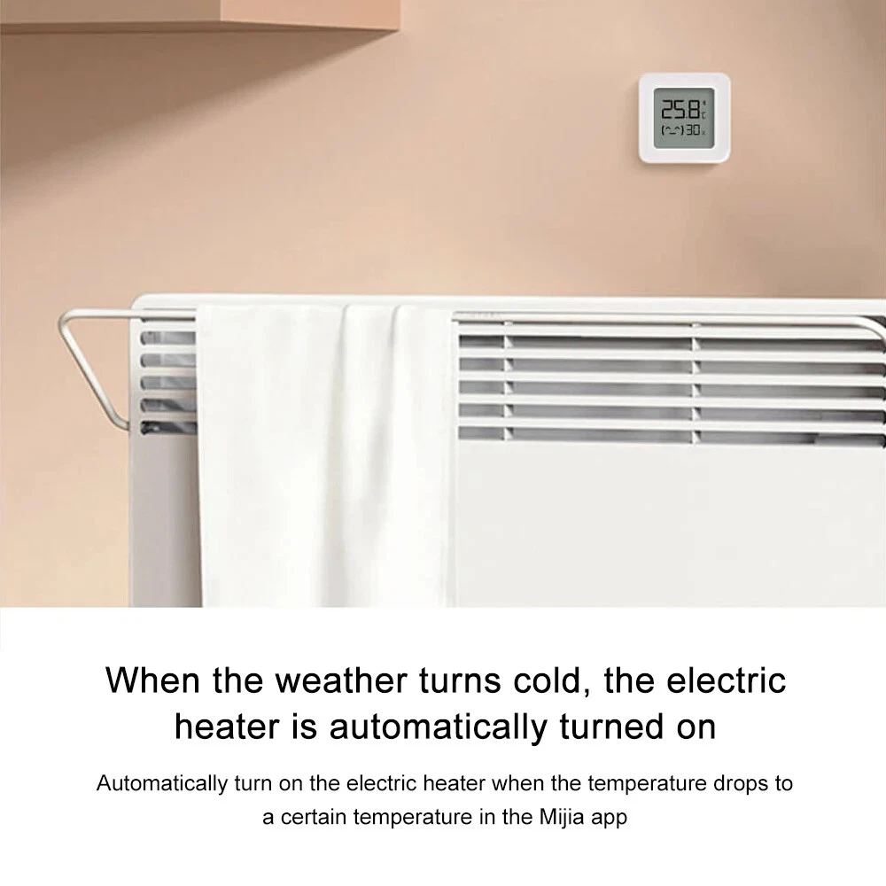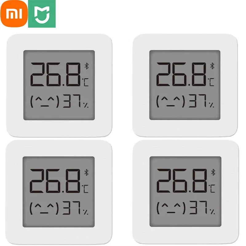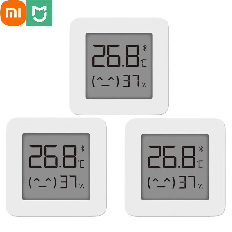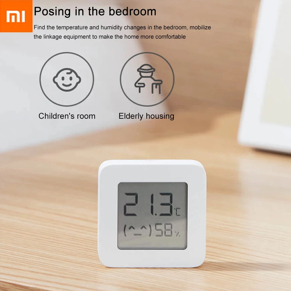 5/4/3/2 pcs Xiaomi Mijia Thermometer 2 Bluetooth-compatible Smart Remote Control Temperature Humidity Sensor with LCD Screen Digital Features -1- Home hygrometer, data can be clearly read in various brightness and angle. -2- High sensitivity and accurate sensirion from Switzerland, sense subtle change of temperature and humidity a breath away. -3- An expression to spell over comfort level, cute and simple. -4- Low consumption screen, a CR2032 button battery for one-year. -5- Built-in advanced Sensirion temperature and humidity sensor, temperature accuracy: 0.1 degrees, humidity accuracy: 0.1 percent RH -6- Via Mi app to switch on humidifier when indoor humidity is too low and air-conditioner when indoors temperature is too high LED digital display, you can get temperature, humidity easily Package included 1 x Xiaomi Mijia Thermometer Hygrometer 2 1 x Wall Sticker 1 x Use Manual(Chinese) Brand XIAOMI Mijia Model LYWSD03MMC CMIT ID 2019DP8115 Material ABS+PMMA Voltage DC2.5V- -3V Battery CR2032(include) Wireless Connection Bluetooth-compatible 4.2 BLE Measure range 0°C-60°C Temperature display resolution 0.1°C Humidity range 0%一99%RH Humidity display resolution 1 %RH Executive standard QB/WSDJ 2401-2019 Size 43 x 43 x 12.5mm Quantity 1 Pc Sudden changes can cause you to have a dry mouth, a cold, a fever, allergies and discomfort. Thermo-hygrometer can sense temperature and humidity changes in your life Can be placed on desks, bedside tables, offices; can also be attached to the wall using the attached wall sticker Thermo-hygrometer , and can be hung from cars, backpacks, doors, etc. through the hanging holes on the side of the fuselage Can be set in advance in the Mijia application, automatically turning on or off associated devices when a certain temperature is reached Design patterns for babies. When the temperature or humidity exceeds the comfort of the baby, the Mijia APP will automatically remind and provide you with coping suggestions, hoping to give you and your family a smarter guardian. Open Mijia APP, add Mijia Bluetooth-compatible temperature and humidity meter 2, and view the temperature and humidity change curve in real time. Data on temperature and humidity changes will be stored in the thermometer body and the cloud. * Mjia temperature and humidity can store 3 months of data, temperature and humidity data changes. Xiaomi weather station