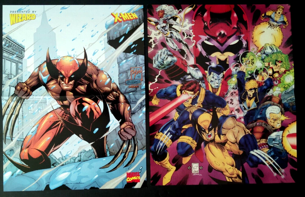 Up for auction are 11 X-Men posters from the early 1990's picked up at DragonCon and other. Included in this auction are: * 10" x 13" Mini-Poster X-Men Logo * 10" x 13" Wolverine & Sabertooth (Previews) * 8" x 36" "Hey Bub, Wanna Party" * 24" x 32" "The Hunt for Magneto" * 11" x 17" X-Men (jump from comic) * 10 x 13" The X-Men "Ladies" (Previews) * 10" x 12" Wolverine (Wizard) * 10" x 12" (Wizard) * 16" x 22" Wolverine and Gambit * 11" x 17" Scott and Jean Get Married (2 tears on top of poster) * 17" x 22" X-Men 2099 Please check out my many other auctions. I will gladly combine auctions for shipping. Thank you and happy collecting.