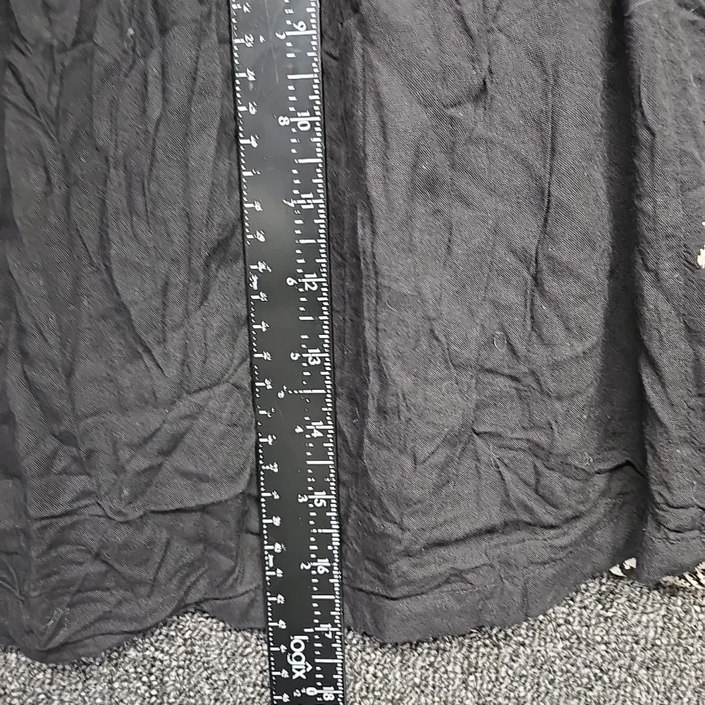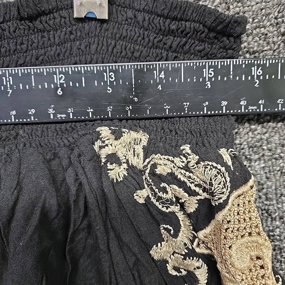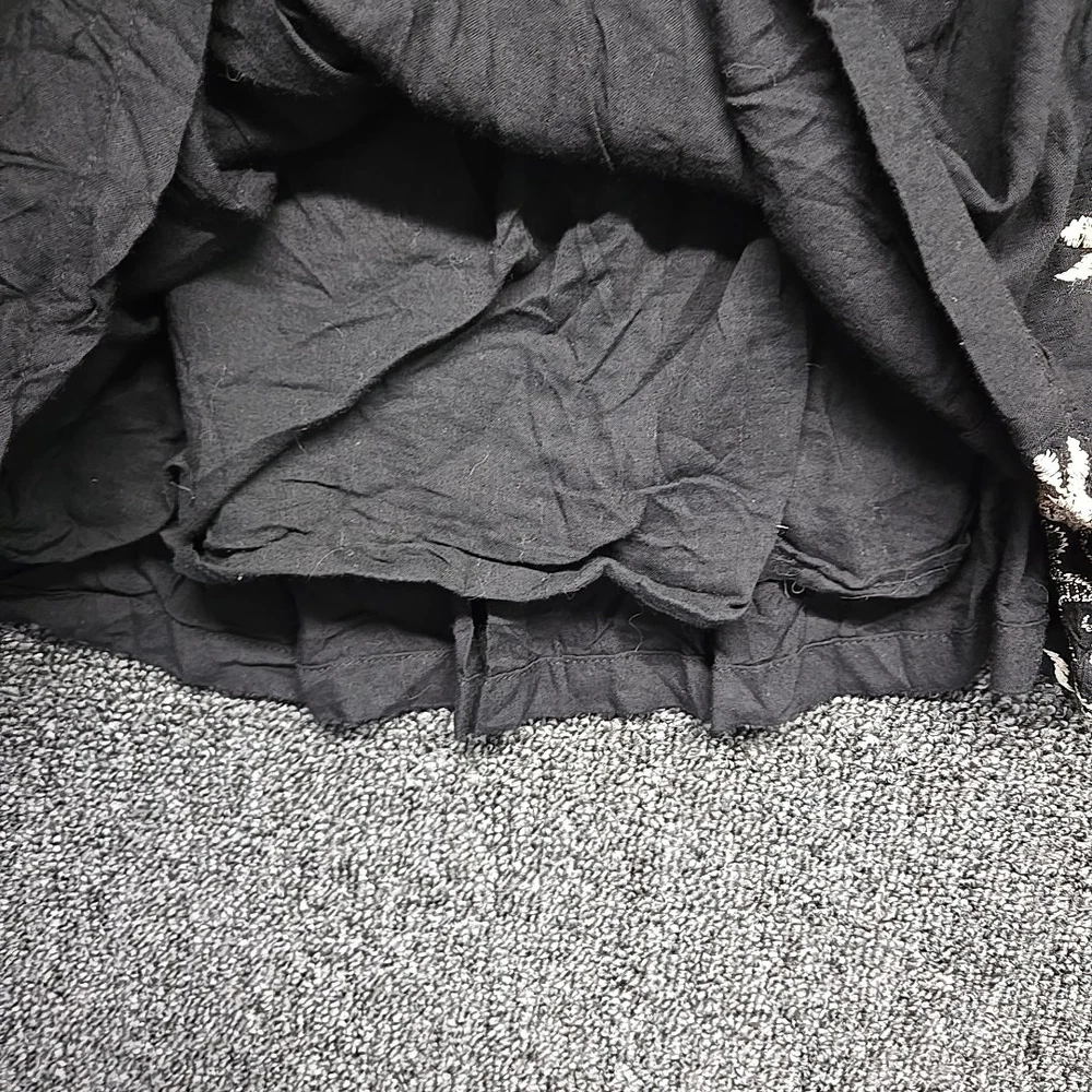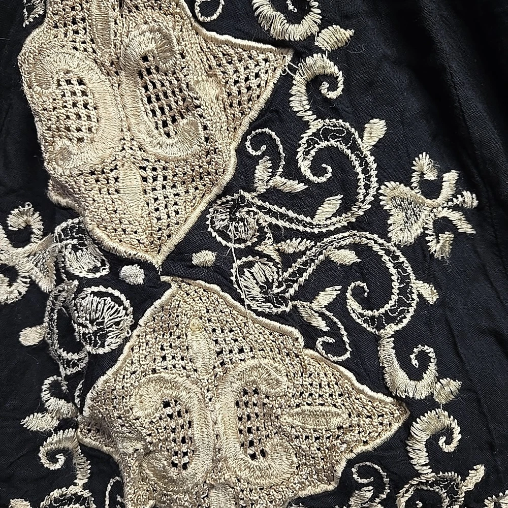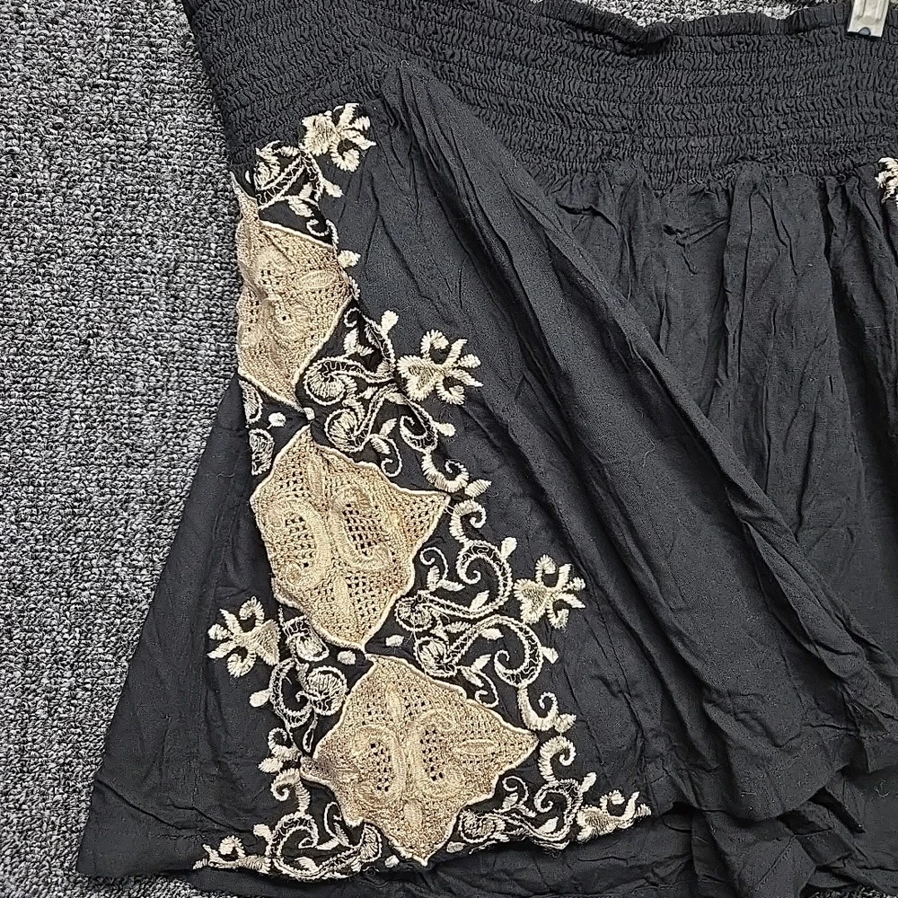 Y2K Black Linen Skirt Womens Large Mini Gold Embroidered Boho Hippie Peasant