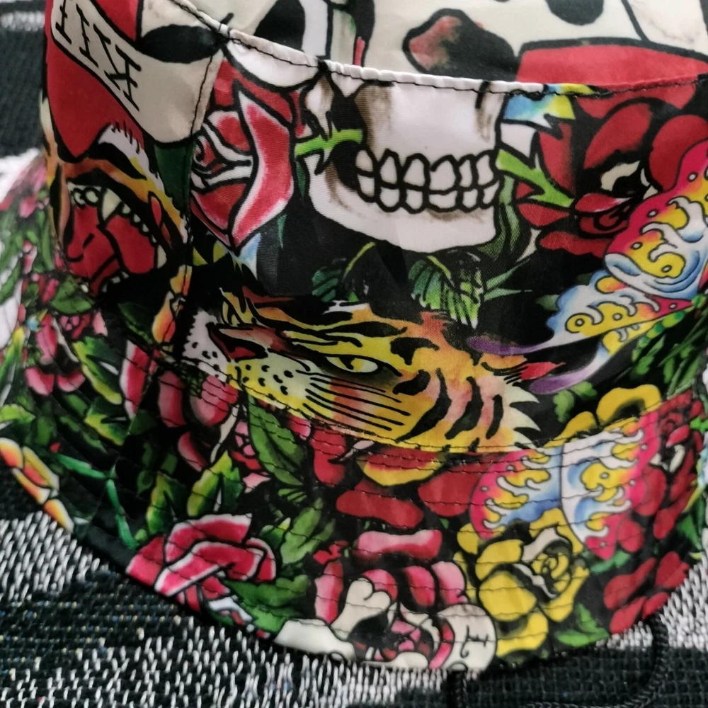 Y2K Ed Hardy All Over Design Bucket Hat Cyber Goth 2000s