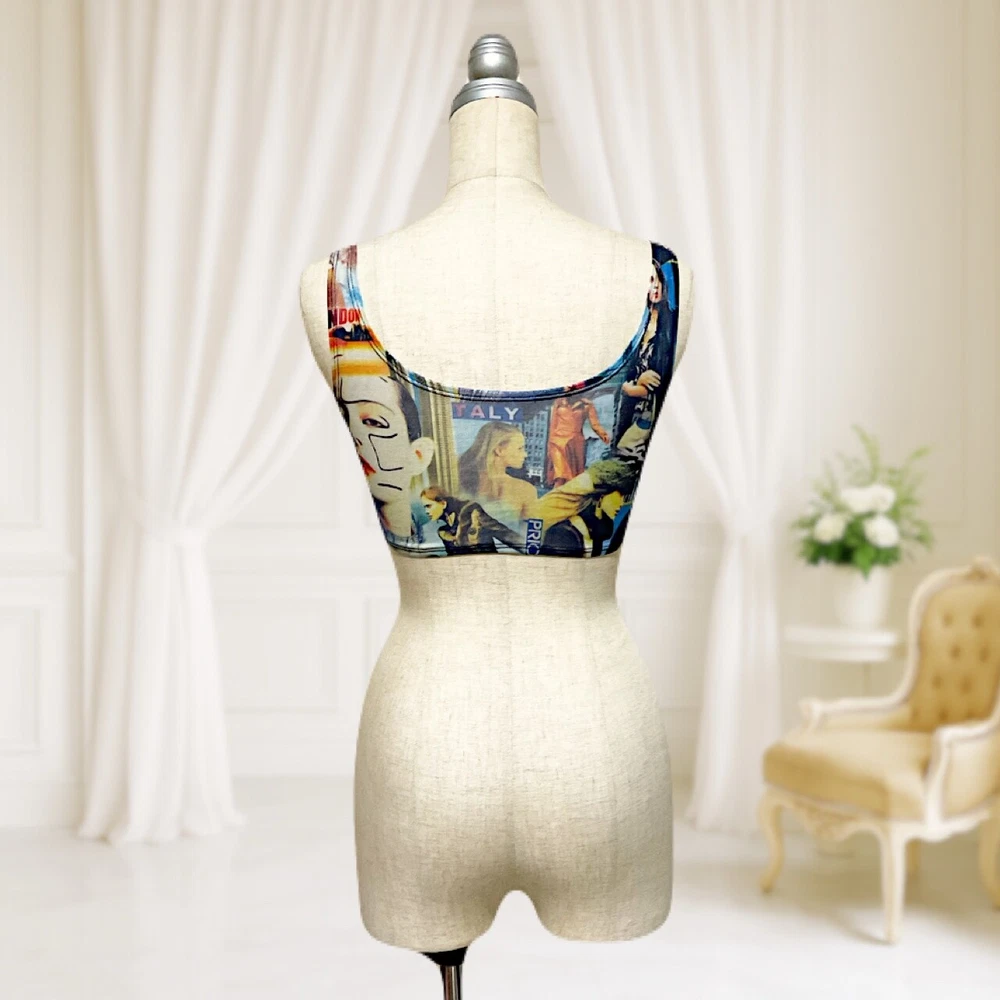 ⚜️Welcome to our shop⚜️ We will deliver rare products from Japan This one item is a wonderful lifestyle I look forward to helping you♥️ A collage of various girls. It is a mini-length tank top with a cool lame print with random graphic prints ❣️ Please don't miss a item that you may not find again ❣️ We will deliver excitement and satisfaction that cannot be conveyed in photos. All images are of the actual item and were taken by our team. Please check the details before purchasing. ▬▬▬▬▬▬▬♦️♛♦♛♦️ ▬▬▬▬▬▬▬ Item Details ⚜️With hologram lame ⚜️The belly part has a V-shaped cut, and the sharp lines give a clean impression. ⚜️It's comfortable to wear, and it's cool to wear it with the navel out of one piece, and it's also good for layering with thin tops or dresses. ⚜️ It is also a good item for those who go to the gym Material polyester Thickness of the fabric Thin Lining Yes Stretch Yes Transparency None Shine Yes Size free size Japanese 7~11 Bust is measured flat (from armpit to armpit) Length is measured from the neckline. Body width 32~53cm 12.6~20.8inch Length 33cm 12.9inch Torso size Japanese 9size Shoulder width 38cm 15inch bust 84cm 33inch waist 60cm 23.6inch hips 86cm 33.8inch Wearing condition fit ▬▬▬▬▬▬▬♦️♛♦♛♦️ ▬▬▬▬▬▬▬ Shipping We ship within 1~3 business days from Japan. Delivery usually takes 7~14 business days. Returns Returns are not accepted. Please contact us if you have any questions before purchasing. Others Feel free to message us anytime if you ▬▬▬▬▬▬▬♦️♛♦♛♦️ ▬▬▬▬▬▬▬ About us Our shop was founded in 1998 and opened a physical store in Japan You can shop online with peace of mind Overseas brands such as Japan,Italy, France, and Los Angeles and original items I was particular about the design and details. High-quality luxury products that are not bound by popularity We have a large number of them. Clothes and fashion accessories, etc. We have other attractive items available. Follow us for updates, and message anytime if you need help! ?? Note: US buyers, please contact me before purchasing due to shipping restrictions.