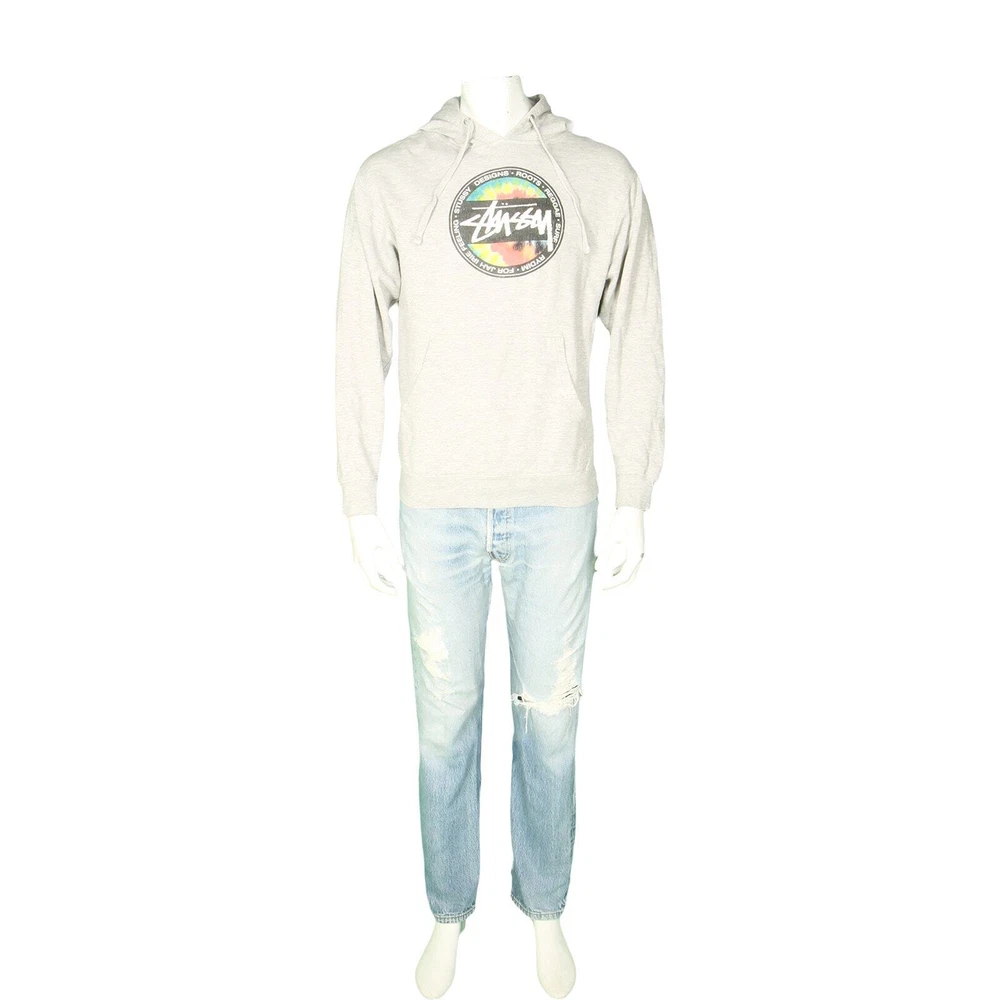 Y2K Stussy Designs Roots Reggae Surf Rydim For Jah Irie Feeling Skateboard Heathered Gray Hoodie Sweatshirt S material: 80% cotton 20% polyester made in China color: heathered gray condition: small hole and a stain on one of the sleeves, the print has cracks, moderate amount of wear size on tag: S mannequin is 6' 2" and a size medium length (from the front on either side of the collar down to the bottom edge): 25 armpit to armpit: 20 shoulder: 19.5 sleeve length: 22 all measurements are in inches and taken with the garment laying flat any major defect will be mentioned and/or photographed 16106 6j8g6 7g5d2