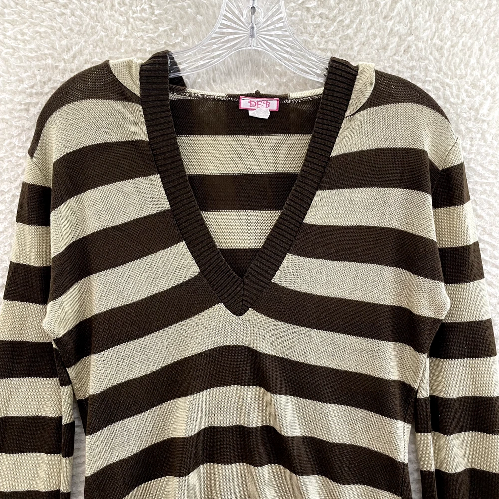 Y2K Vintage Hoodie Sweater L Large Brown Tan Stripe Bella Swan Boho Fairy Grunge -Tagged Women's/Junior's L -Small hole on the back (pictured) -Has pilling (pictured) *Please refer to pictures for approximate measurements*