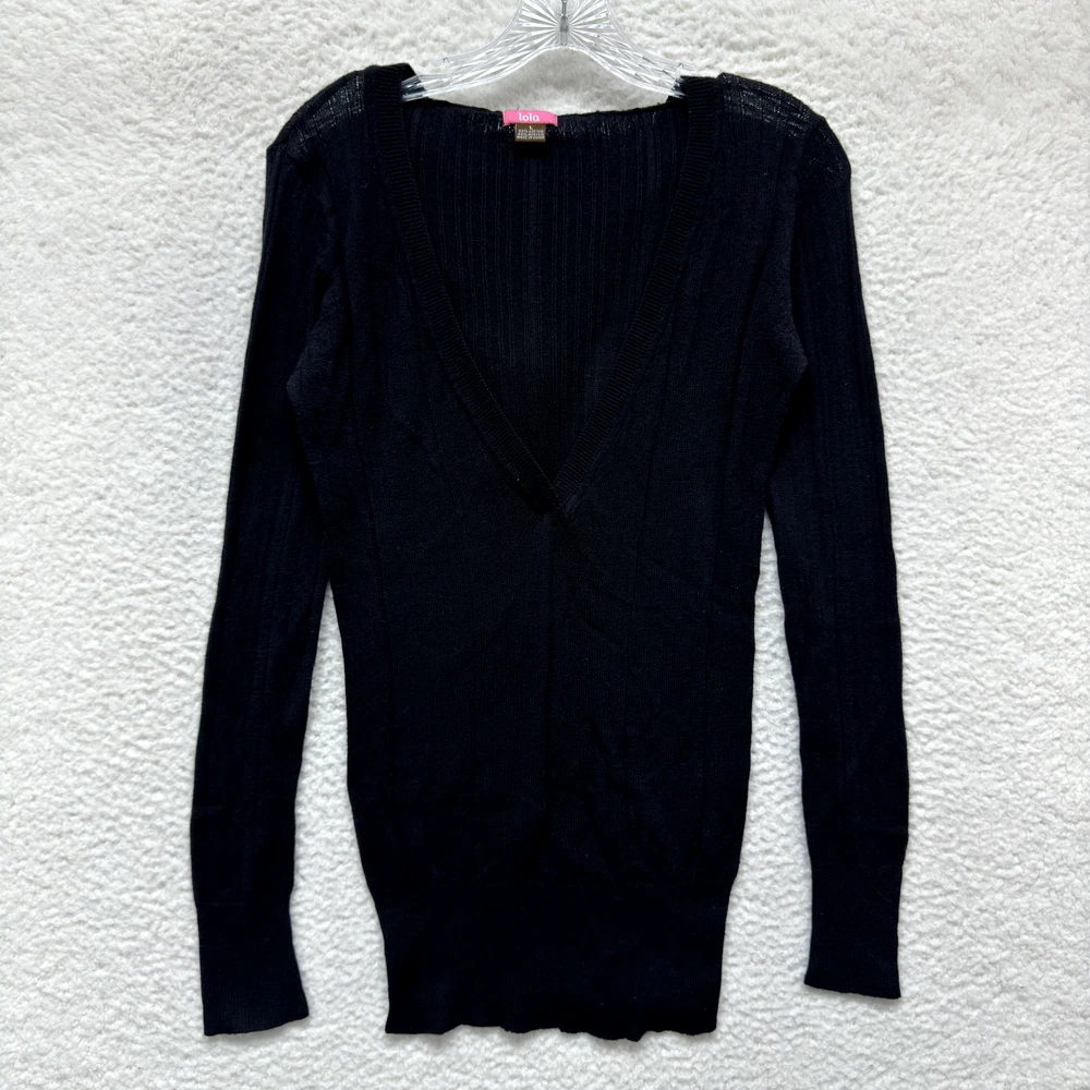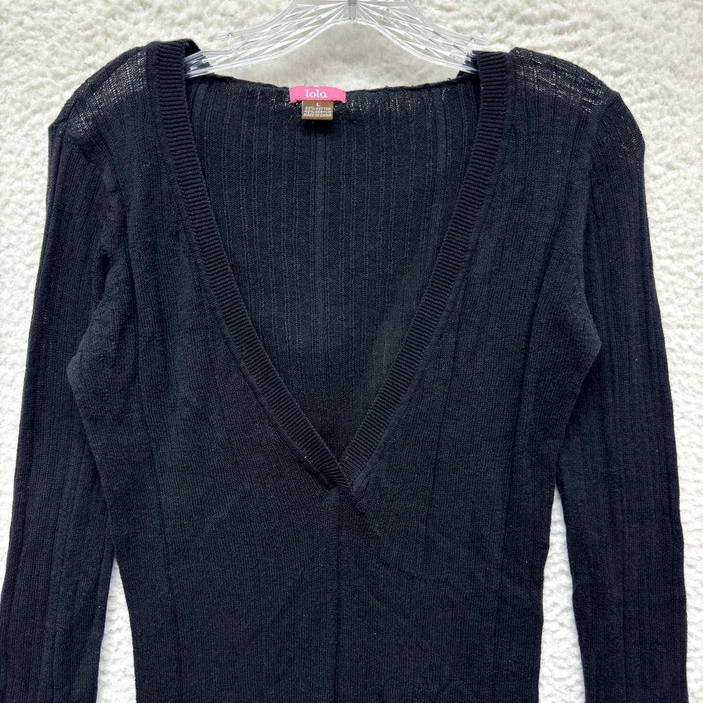 Y2K Vintage Lola Boho Fairy Grunge Hoodie Sweater Large Black Rib Knit Tunic *Please refer to pictures for approximate measurements*