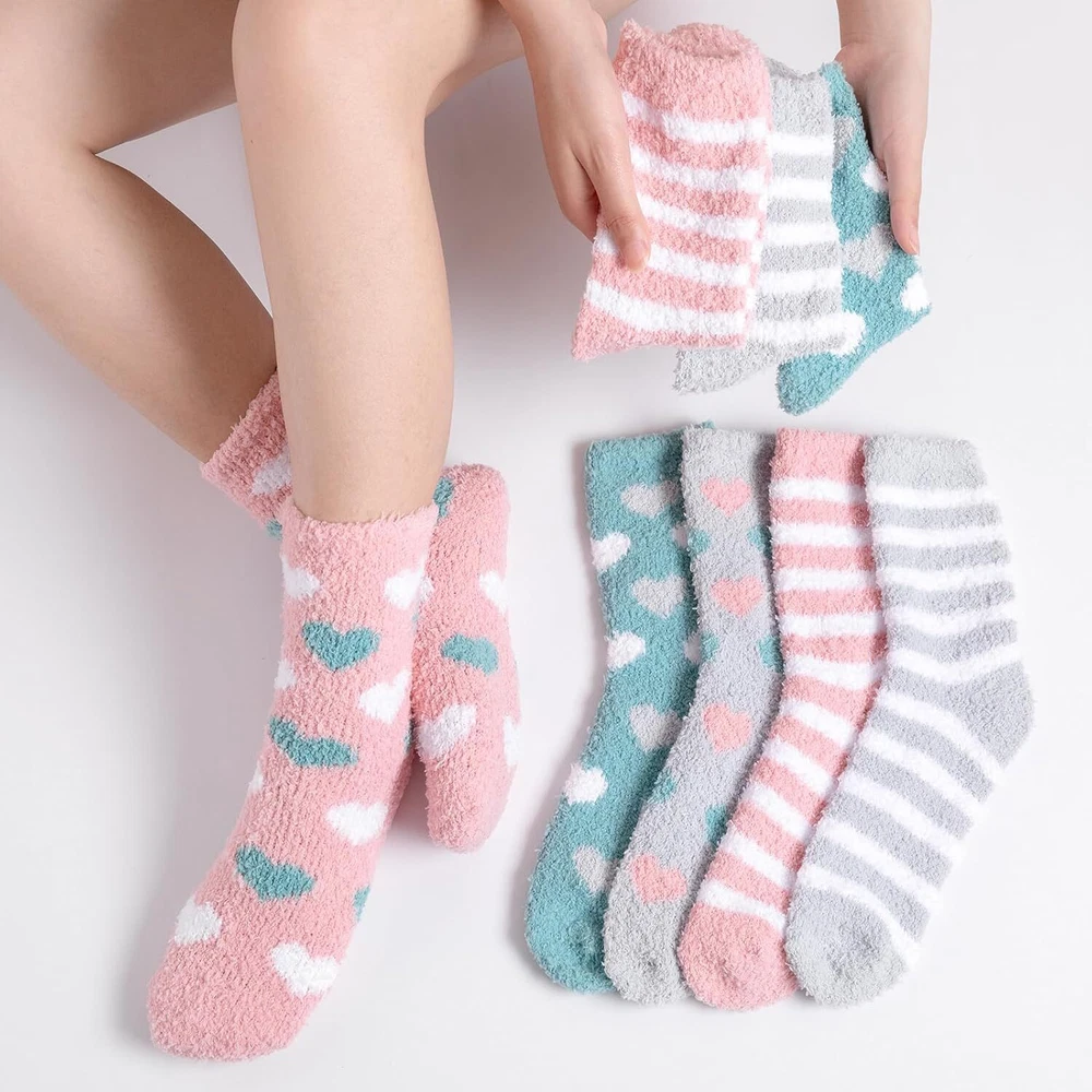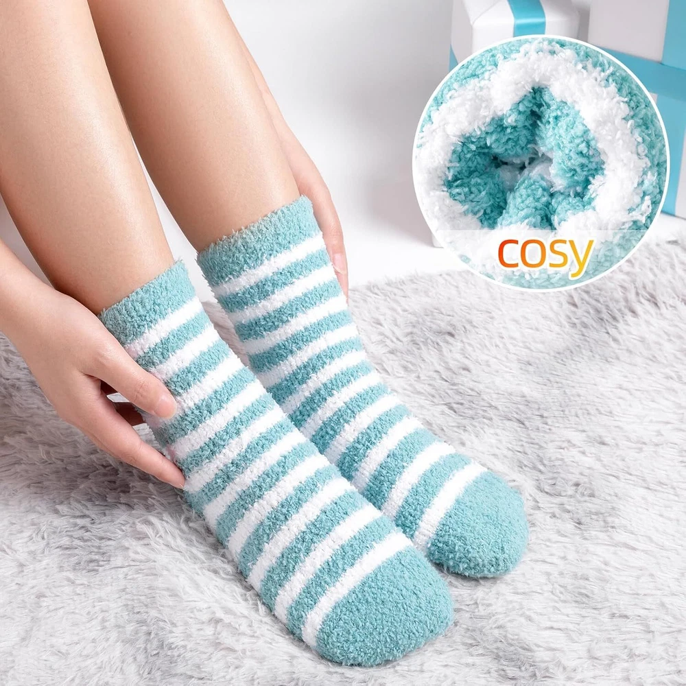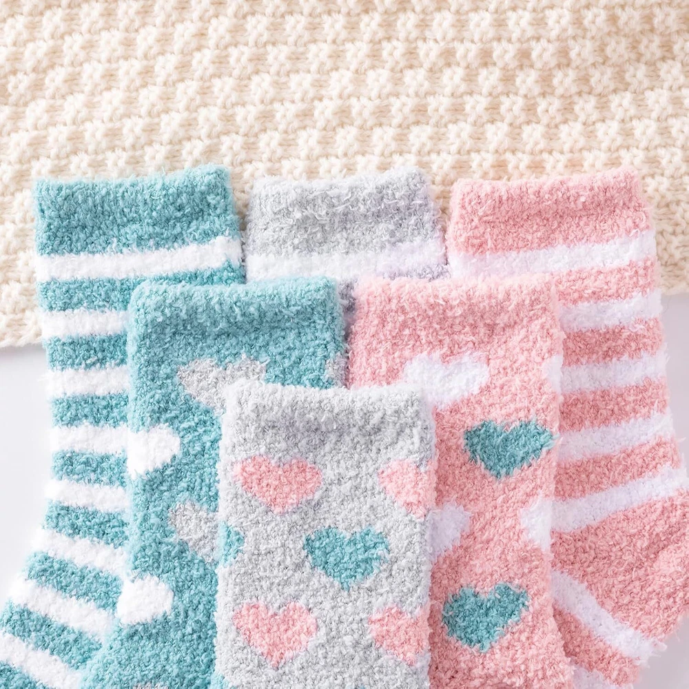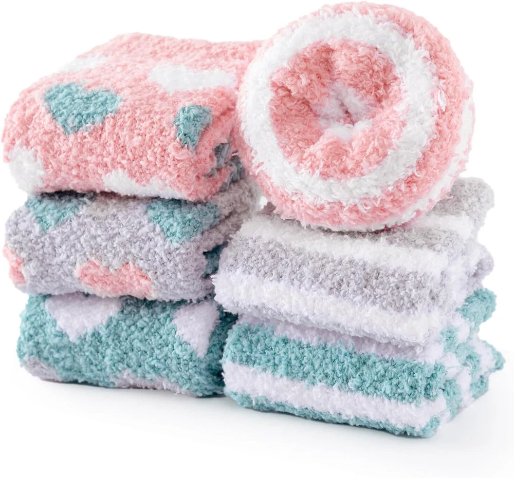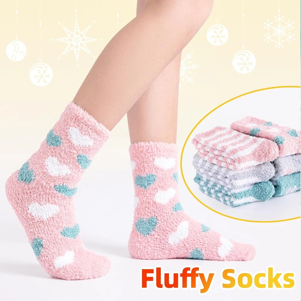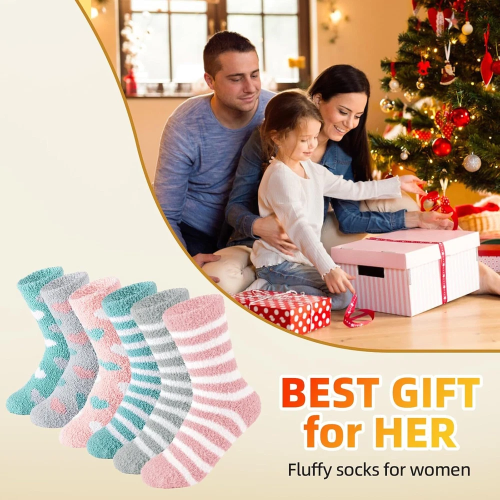 YANGTE Fluffy Socks Womens 4-7,6 Pairs Ladies Bed Socks Cosy Fuzzy Diabetic Brand YANGTE Package Dimensions 29.1 x 22.9 x 3.4 cm; 270 g Manufacturer YANGTE Item model number Fluffy Socks Womens 4-7 Features Cozy and Fluffy - These fluffy socks for women are designed to provide the ultimate comfort and warmth. Made from soft and plush materials, they offer a cozy and snuggly feel to your feet. Slip into these socks and indulge in their fluffy texture, making them perfect for lounging around the house or keeping your feet warm during the winter nights. Adorable Design - These women's bed socks come in a set of six pairs, featuring three main color tones: Pink, green, and grey. Each color set includes a pair of socks with cute heart patterns and a pair with charming stripes. The combination of these adorable designs adds a playful and lovable touch to your sock collection, making them a delightful addition to your winter wardrobe. Winter Warmth - With their excellent insulation properties, these winter warm socks offer excellent heat retention, keeping your feet cozy and snug. Whether you're curled up on the couch, reading a book, or enjoying a cup of hot cocoa, these socks will provide the warmth you need to combat the cold. They are a perfect companion for chilly winter evenings and make great christmas gifts for women, including moms. Diabetic-Friendly - These ladies' fluffy socks are also suitable for individuals with diabetes or sensitive feet. They provide a gentle and non-restrictive fit, ensuring maximum comfort without compromising circulation. The soft and cushioned fabric of these diabetic socks helps to protect sensitive feet and keep them warm during colder seasons. Thoughtful Gift Option - These fluffy socks make wonderful christmas gifts for women and moms. The combination of cute designs, cozy materials, and diabetic-friendly features makes them a thoughtful and practical gift choice. Surprise your loved ones with these adorable and warm socks, offering them comfort and joy during the holiday season and beyond. Our Business 100% Customer Satisfaction We go above and beyond to ensure you receive the best level of service. Returns We want you to be happy with your purchase, however in the rare occasion that you are not, please let us know and we will contact you to arrange either a collection or a refund. Please CONTACT US before leaving any negative feedback and we will promptly sort out any issue with your order. 6135427