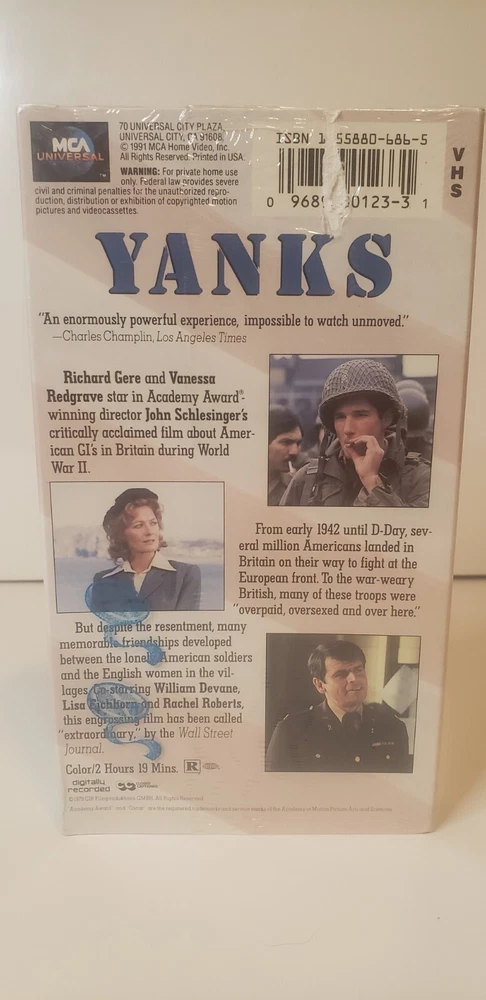 This YANKS VHS tape is a must-have for fans of drama movies. The tape is still sealed and has never been opened, ensuring that you get the best viewing experience possible. Starring Richard Gere and Vanessa Redgrave, this movie is a classic that is sure to captivate audiences of all ages. The tape comes from the Universal studio and is categorized under VHS tapes, movies, and TV. This is a great addition to any collection, especially for those who are fans of drama movies. Don't miss out on the opportunity to own this piece of cinematic history.