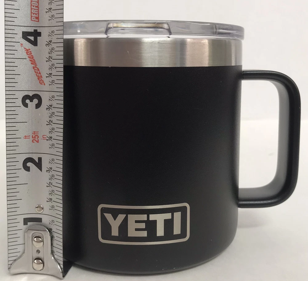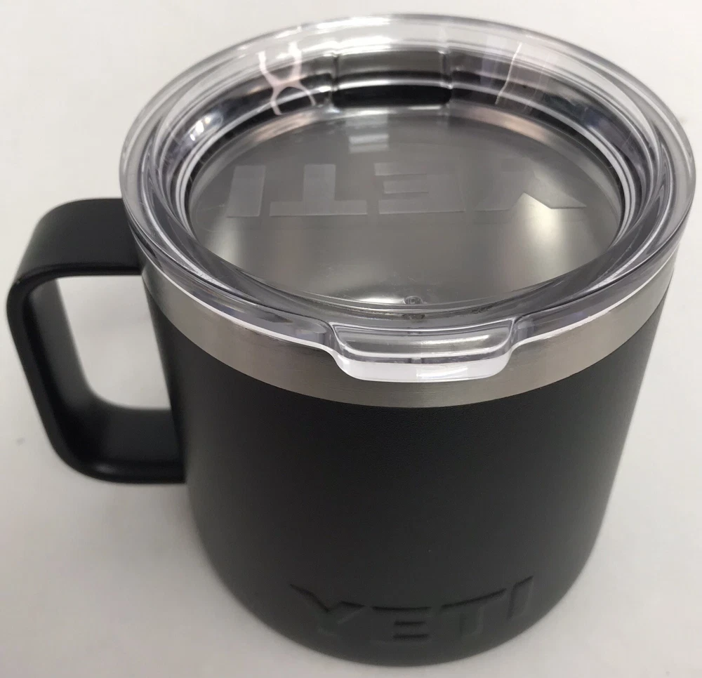 YETI Rambler Insulated Black Stainless Steel 14oz Coffee Mug w/Lid Nice pre-owned condition. See pictures for details.