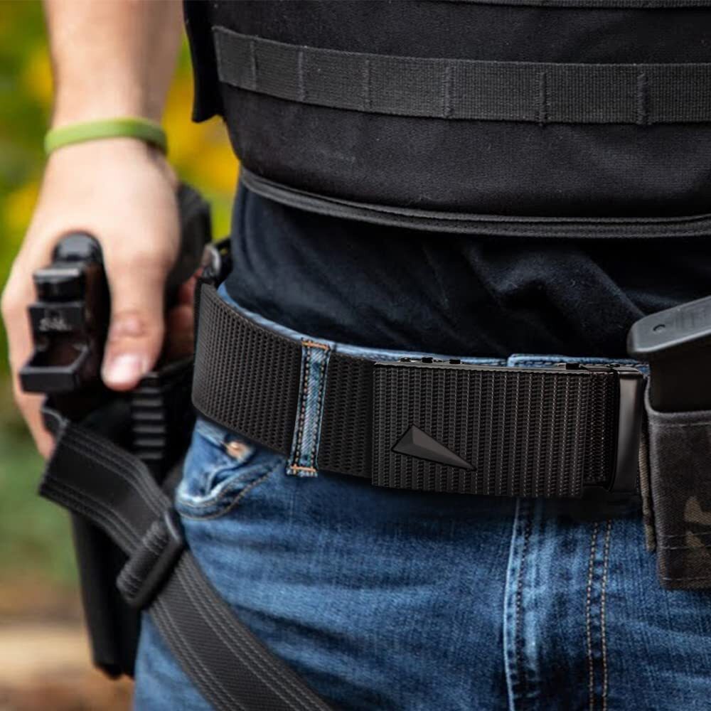 Description Web belt for men - new design ratchet mechanism , quick release makes adjustment easy, you can quickly tighten or loosen at any point on the web belt. Web belt for men - new design ratchet mechanism , quick release makes adjustment easy, you can quickly tighten or loosen at any point on the web belt. Heavy duty Tactical belt - 3mm thickness classic tactical belt, hard, 0 stretch. Solid metal buckle hold your pants at any time, no embarrassment. Use occasions - fashion and exquisite buckle pattern design suitable for walking, hunting, golfing, hiking, climbing etc. Awesome gift ideas - the tactical belt comes with a higher-end gift box, and is a great present for your husband, kids, boyfriend, father, and friends on birthday, anniversary, new year, christmas, or any everyday use. Excellent customer service - we provide a 90-day return policy, any issues with the men's belts, please contact us, our customer service team will serve you 100% satisfaction within 12 hours.