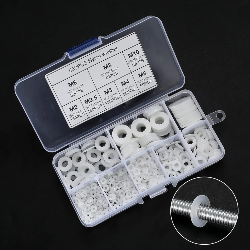 YOUYIDUN-650 Pcs White Nylon Flat Washer Assortment Kit, Round Flat Nylon Washers for Household Commercial Appliances Electrical Connections, 5-20 mm, M2/M2.5/M3/M4/M5/M6/M8/M10 Premium Material: The flat washers for screws are made of outstanding plastic nylon material with smooth edges, which is corrosion resistance, tear resistance, and compression resistance, has good heat insulation, durable for long time use. Easy to Use: Nylon washers can isolate, reduce friction, disperse pressure, prevent leakage and looseness. This nylon spacer has a certain isolation and protection effect, extends the service life of the equipment. Easy to Store: These white nylon flat washers are packed in a separate sorting box, you can quickly find washers for plumbing size required for installation and use, portable, tidy, and not messy. Wide Applications: Assorted nylon washers are widely used in household appliances and industries, mainly for electrical connection, commerce, automobiles, ships, ordinary plumbers, generators, machinery and devices, and more. Package Includes: The white nylon plastic washers set contains a variety of common sizes (M2/M2.5/M3/M4/M5/M6/M8/M10), flat nylon washers for plumbing can meet your various needs. Shipping We offer FREE shipping on all orders! We ship within Three business days of payment, usually sooner. We use a selection of shipping services such as UPS, FedEx, USPS etc. We only ship to the lower 48 states, no APO/FPO addresses or PO Boxes allowed. Local pickups and combined shipping options are not provided at this time. Return You can return a product for up to 30 days from the date you purchased it. Any product you return must be in the same condition you received it and in the original packaging. Please keep the receipt. Feedback Customer satisfaction is very important to us. If you have any problem with your order, please contact us and we will do our best to make you satisfied. Contact Us If you have any queries, please contact us via ebay. We usually respond within 24 hours on weekdays. Please visit our eBay store to check out other items for sale! Thank you for shopping at our store.