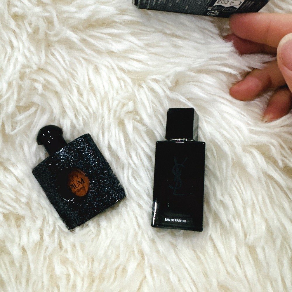YSL Black Opium And YSL Myself Mini Splash Bottle 7.5 ml / 0.25 oz Each. YSL Black Opium Womens eau de Parfums 7.5 ml Ysl myself eau de parfums 7.5 ml