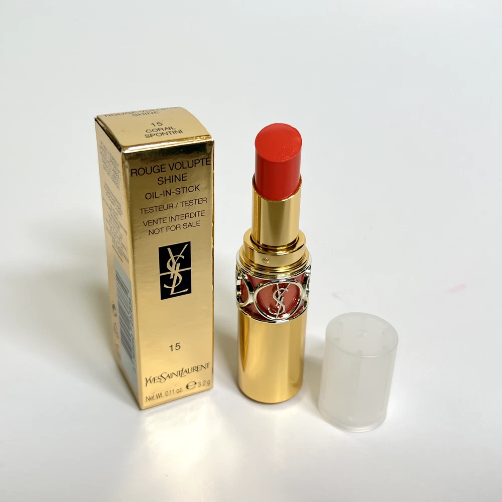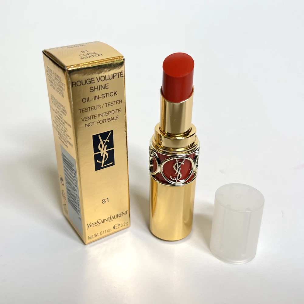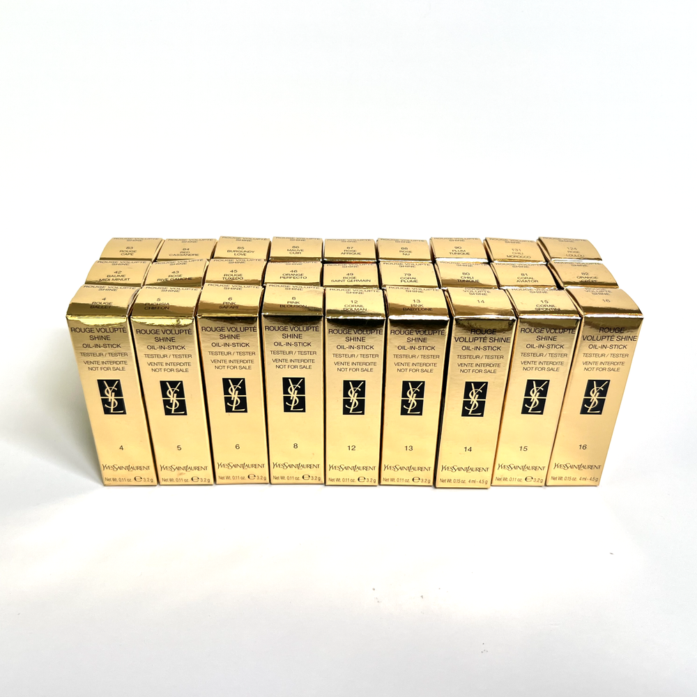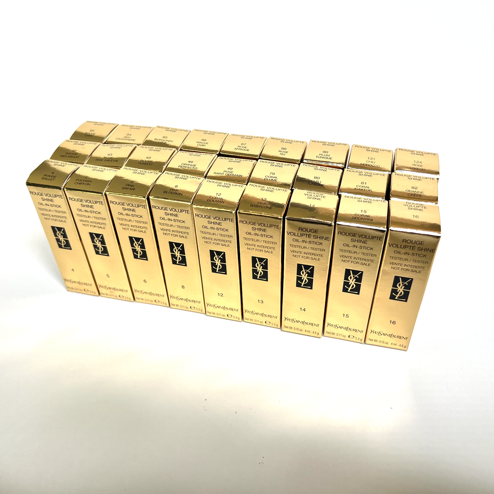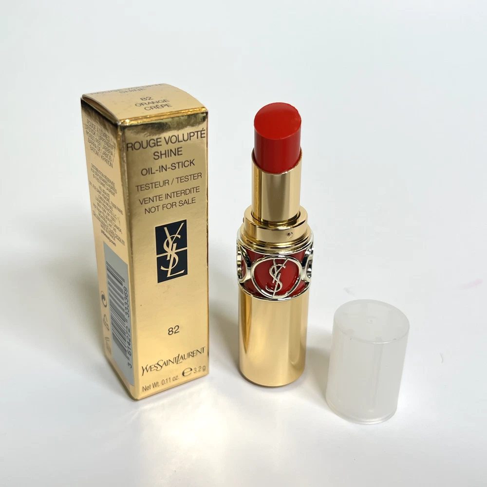 This eBay listing is for 1 YSL Rouge Volupté Shine (RVS) Oil-In-Stick lipstick, a brand new tester w/ plastic cap and no box. These have never been sampled or used. This lipstick has a unique formula that locks in moisture for up to 8 hours! Don’t get just one! I have them for very cheap because they all come with plastic caps and no boxes. Many great shades to choose from! PLEASE PICK YOUR SHADES FROM THE DROPDOWN MENU: #4 - Rouge Ballet #5 - Fuchsia Chiffon #14 - Corail Marrakech #15 - Corail Spontini #16 - Orange Majorelle #43 - Rose Rive Gauche #45 - Rouge Tuxedo #79 - Coral Plume #80 - Chili Tunique #81 - Coral Aviator #82 - Orange Crêpe #83 - Rouge Cape #84 - Red Cassandre #85 - Burgundy Love #87 - Rose Afrique #88 - Rose Nu #90 - Plum Tunique #131 - Chili Morocco Thank you so much!