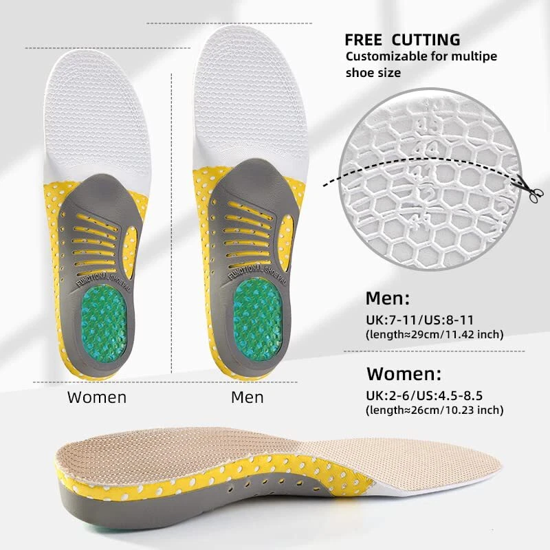 YURRUON Sports Gel Insoles for Men and Women Flat Foot Health Sole Pad for Shoes Insert Arch Support Pad Shock Absorption Metatarsal Pad Features: Superior shock absorption and provides long last comfort. Inserted EVA damping pads on the Forefoot and heel, shock absorption. Reduces stress on knees and lower body. The soft top cloth absorbs moisture to keep feet dry and reduce odour. U-shaped heel design, walking comfortably. Full length bow support. Extra heel pad protects the heel bone from a painful stroke. Provide extra support for the heel and the foot. Extra cushioning at the heel for maximum effect. Stoma design, not afraid of sweat, suitable for exercise, keep the feet fresh. Suitable for comfort and amortization of all types of sport and casual shoes. Size Details: Women size: US 4.5-9 (EU 35-40), Length 26cm. Men size: US 8-12(EU 41-46), Length 29cm. Free to cut, can be cut according to requirements. How to use? Step 1:Remove existing insoles from shoes Step 2:Insert this insoles into shoes measure for size Step 3:Trim for exact fit (Hint Use original insoles to trace before cutting) Step 4:Trim toe to size first then sides and heel for optimum comfortlength Package Including: 1 pair insole. PREMIUM MATERIALS: Durable PU foam base and multi-layer cushion provide long-lasting support and comfort while walking, running and hiking. Active carbon fiber remove odors. SPECIALLY DESIGNED: Inserted EVA damping pads on the Forefoot and heel, superior shock absorption and provides long last comfort.U-shaped heel design, walking comfortably.Stoma design, not afraid of sweat, suitable for exercise, keep the feet fresh. DOUBLE LAYER CUSHIONING: Sports insoles provide maximum cushioning because of the gel in the backfoot. Extra heel pad protects the heel bone from a painful stroke.Our technology insoles reduces stress on your lower body joints which gives you more energy and keeps you on your feet longer. BREATHABLE&ANTI-ODOUR:The full length walking insoles design by the net material and air vents that provide good breathability and keeps the odor from becoming stuffy even if you wear it for a long time. MULTI-PURPOSE ATHLETIC & RUNNING INSOLES: They suit all types of walking and running, including jogging, team and individual sports, hiking, and more.Fit for many types shoes of men and women, such as running shoes, work boots, sneakers, street shoes, slipper, flats, and so on. Shipping from the USA All of our products are shipped from the USA, ensuring quick delivery to your destination. Payment We offer the following payment methods: PayPal, credit card, bank transfer, and eBay's secure payment system. Free Shipping & Free Returns Shipping within the USA is FREE. Additionally, any return is absolutely free for you. Risk-Free Purchase You have the option to return an item within 30 days without any justification. We cover the return shipping costs! Fast Shipping We ship immediately upon receipt of payment. Generally, the package is delivered within 2-3 days in the USA. If it takes longer, we will contact you. Quality and Costs Made in Europe, USA, China No customs fees or additional charges Total satisfaction guarantee Invoice with declared VAT available upon request in .pdf format Feedback Your feedback is very important to us. After you pay for your purchase, you will automatically receive positive feedback from us.