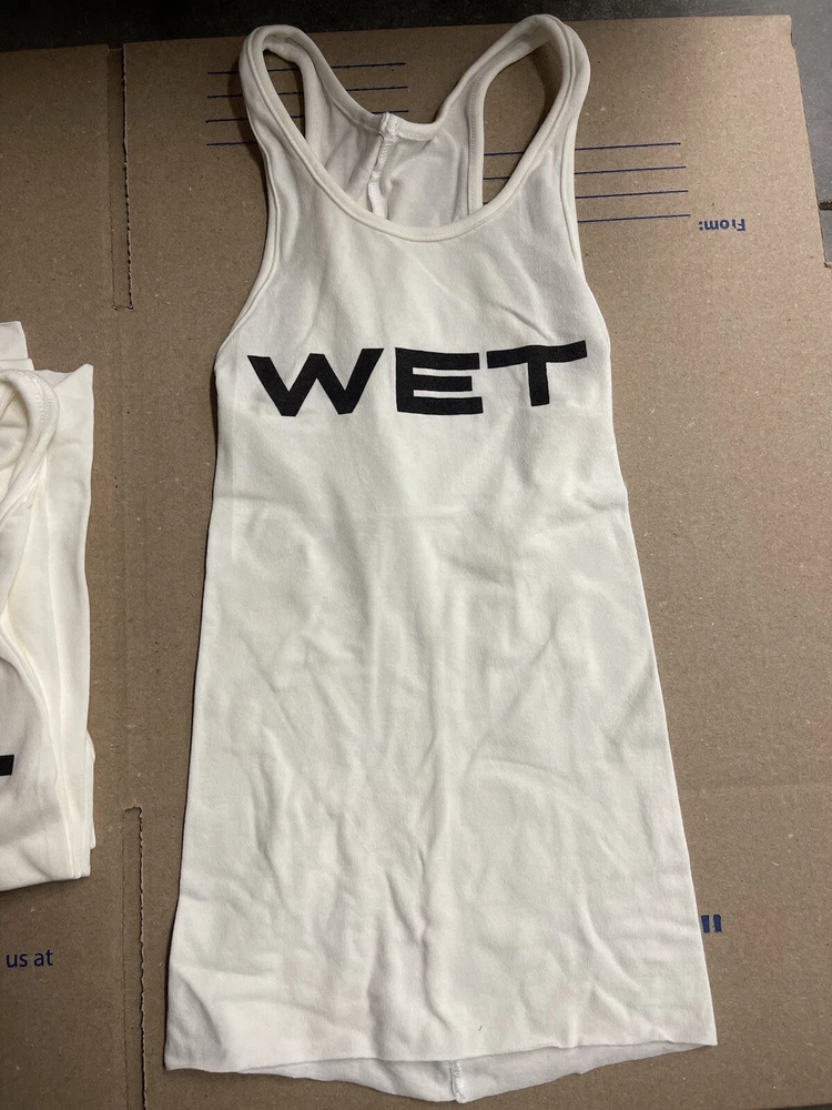 This YZY MOWALOLA WET TANK is a must-have for any fashion-forward woman. This official Yeezy merch features stretch material, a white color, and a regular fit. It is perfect for activewear occasions and can be paired with any bottom of your choice. The tank is a size 3 and belongs to the Women's Clothing Activewear Tops category. It is designed by Kanye West in collaboration with Mowalola and Vultures. Get yours today and step up your fashion game! no returns