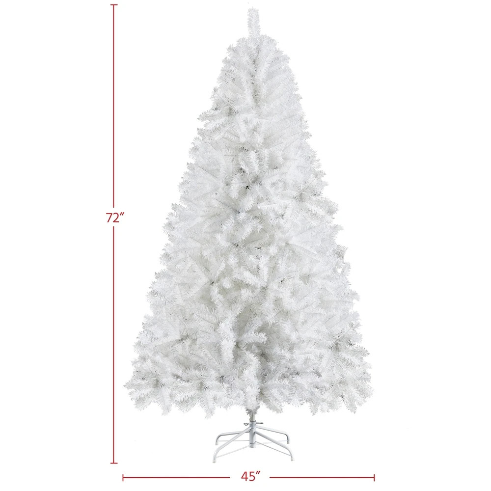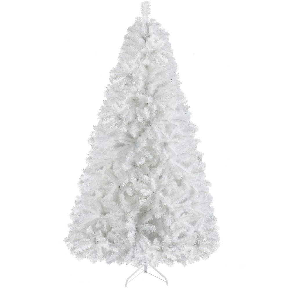Thinking of something different for Christmas this year? How about starting a white Christmas by setting up a stunning & snowy Christmas tree. This hinged white artificial Christmas tree can stand out in various holiday decorations to set a crystal clear & luxurious tone in your designated place. Premium PVC branches and tips are flexible to set and fluff out. Fire-resistant feature assured safety usage; Foldable stand is easy to store and pack; Non-skid rubber feet keep the tree stand in place; Versatile color & design make this holiday decoration wide applicable. Do not miss it!!Features:1. Premium quality material: Get into the Christmas joy with this flourishing man-made tree. All branches and tips are made of premium PVC. Both trunk and the stand are made of iron.2. Foldable stand: Free Shipping Over $49.99* Details Yaheetech 6Ft/7.5ft Hinged Spruce Christmas Tree Holiday Decorative Product Description: Thinking of something different for Christmas this year? How about starting a white Christmas by setting up a stunning & snowy Christmas tree. This hinged white artificial Christmas tree can stand out in various holiday decorations to set a crystal clear & luxurious tone in your designated place. Premium PVC branches and tips are flexible to set and fluff out. Fire-resistant feature assured safety usage; Foldable stand is easy to store and pack; Non-skid rubber feet keep the tree stand in place; Versatile color & design make this holiday decoration wide applicable. Do not miss it!! Features: 1. Premium quality materialGet into the Christmas joy with this flourishing man-made tree. All branches and tips are made of premium PVC. Both trunk and the stand are made of iron. 2. Foldable standThe stand is foldable for easy storage and packing. Four feet of the stand are covered by non-skid rubber each to make sure the tree is sturdy. 3. Versatile designOur flourishing artificial tree can be used either indoor or outdoor, the sturdy metal frame is relatively heavier and not likely to collapse. 4. Flexible tipsThe "leaves" on our tree can be bent and set at will. After putting the tree body and they stand together, you are supposed to fluff out the tips to give a full look at your special Christmas tree. 5. Easy to set upOur tree is made based on a hinged system, the tree body is divided into 3 sections with labels on them. The stand can also be effortlessly folded out and connect to the tree body with screws. 6. Design by yourselfThe lush spruce branches provide ample space for your decorations and toys. It is also an unlit tree with no extra ornaments on it. 7. Lightweight but sturdyThis artificial Christmas tree features a lightweight design, which is convenient to move around as needed. The solid metal stand provides extra stability for you to hang beautiful ornaments without worrying about tipping over. Specifications: MaterialsPVC, Iron CategoriesRegular Unlit Spruce 6 FT Christmas tree: Total Tips Count818 Overall Dimension45× 72''(Dia. × H) Shipping Dimension40 × 9.5 × 9'' Stand Dimension18.5 × 6''(Dia. × H) Tree Trunk Diameter1'' G.W.16.1lb; N.W. 13.7lb 7.5 FT Christmas tree: Total Tips Count1539 Overall Dimension53 × 90.5''(Dia. × H) Shipping Dimension46× 14×15'' Stand Dimension21.7 × 7.3''(Dia. × H) Tree Trunk Diameter1.3'' G.W.32lb; N.W.26 lb