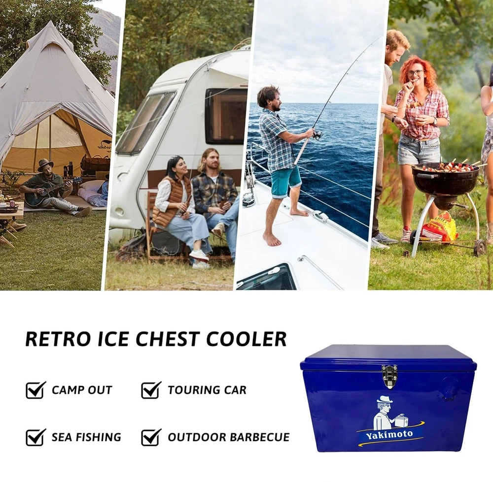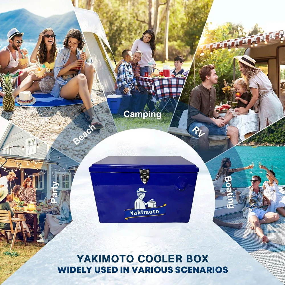 How does the cooler work? Our cooling technology is not comparable with other cool boxes. If you combine the Cooler Box Correct use, the temperature inside can be kept constant for many days - without power supply, in any climate zone, anywhere in the world. Brand Background?: Yakimoto: The Frozen Mission - A Global Fight for Survival Since 1979 Historical Anchor: WHO?s "Cold Chain Initiative" In 1979, the World Health Organization (WHO) launched humanity?s largest vaccine transport operation?shipping 4 million doses of smallpox vaccine from Geneva to Somalia, the final outbreak zone in Africa. With temperatures soaring to 122°F (50°C) and no reliable electricity, traditional refrigeration units failed mid-transit, jeopardizing millions of dollars? worth of lifesaving vaccines. At Addis Ababa Airport, Japanese engineer Hayato Yakimoto made a desperate gamble: he stripped aluminum panels from the cargo plane?s hull and rigged a makeshift insulated container using titanium climbing carabiners from his gear. Drawing on alpine thermal preservation techniques, he maintained the vaccines? integrity through the final leg to Mogadishu, ultimately enabling the WHO to declare smallpox eradicated in 1980. From Historic Triumph to Brand Legacy Hayato Yakimoto was the uncle of Yakimoto?s founder, Taro Yakimoto. Family archives preserve the specs of that improvised lifesaving container: -13°F to 46°F (-25°C~8°C) temperature control (3x stricter than commercial standards of the era) 72-hour passive insulation (harnessing residual heat from aircraft hydraulic fluid) Crash-resistant design (tested through 5 emergency landings) These parameters, forged through blood and sweat, became Yakimoto?s foundational doctrine?a sacred text encoding the brand?s technological origins. Product Information: The 20L Insulated Cooler Box by Yakimoto is a durable and portable ice box with a 4-day ice retention capacity, perfect for outdoor activities like camping, hiking, fishing, and traveling. With a maximum insulation time of 72 hours, this cooler box features a capacity of 21 quarts, making it suitable for storing a variety of items. The stylish Blue add a fun touch to the steel construction, while the passive refrigeration type ensures efficient cooling without the need for power sources. Whether you're at the beach, in the RV, or on a camping trip, this cooler box is a reliable option for keeping your food and drinks fresh. ✔️ Beach Day Essential: Keep drinks chilled under direct sunlight ✔️ Tailgate Ready: Secure latch prevents spills during transport ✔️ Camping Must-Have: 4-day cooling for weekend wilderness trips ✔️ Backyard BBQ Companion: Fits 35 cans plus ice for 6-8 guests ✔️ Construction Site Helper: Rugged build withstands job site demands