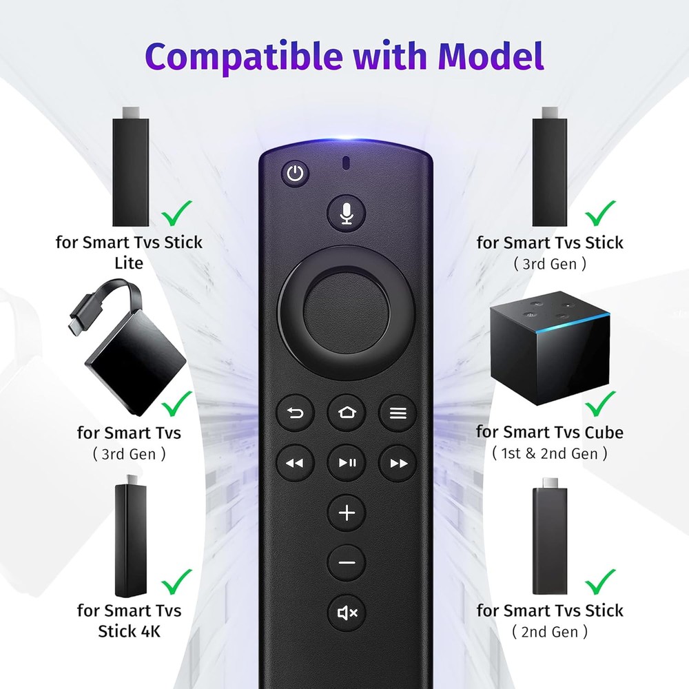 yalanle Replacement Voice Remote Control fit for Smart Stick Tv(2nd Black Product Details Package Dimensions: 6.1 x 1.65 x 0.83 inches Item Weight: 1.76 ounces Manufacturer: yalanle Brand: yalanle Special Feature: Voice Search Color: Black Max Number of Supported Devices: 1 Compatible Devices: / Replacement Voice Remote Control (2nd GEN) compatible with Smart TV Cube (2nd Gen), Smart TV Stick (2nd Gen), Smart TV Stick 4K,Smart TV Cube (1st Gen),Smart TV Cube (EX69VW),Smart TV Stick (3rd Gen), Smart TV Stick Lite and Smart TV (3rd Gen) Not compatible with Smart TV (1st and 2nd Gen), Smart TV Stick (1st Gen), or Smart TV Edition smart TVs This is voice remote control, you need to pair it firstly before you use, and below is pairing steps: Press the Home button about 8-30 seconds until the LED starts to rapidly flash amber, then the remote should automatically pair with your device Voice funtion make it easily to find, lauch and control all existing content you want, such as play music, view sports scores, check the weather, see live camera feeds, and control compatible smart home devices With standard navigation and playback controls, you can quickly skip to your favorite scenes Information: Specification: Material:Plastic Battery Type:2 AAA batteries (Not included) Compatible with : Smart TVs Cube (2nd Gen); Smart TVs Stick (2nd Gen); Smart TVs Stick 4K; Smart TVs Cube (1st Gen); Smart TVs (3rd Gen, ); Smart TVs Cube (EX69VW); Smart TVs Stick Lite; Smart TVs Stick 2020 Release & 4K; Smart TVs Stick (3rd Gen) ; Not compatible with : Smart TVs (1st and 2nd Gen); Smart TVs Stick (1st Gen); Smart TVs Edition smart TVs; Package list: 1 * User Manual 1 * Replacement Remote Control How to Pair ? 1:If your original remote control is available: Go to Settings > Controllers & Bluetooth Devices > Smart TVs Remotes > Add New remote Then hold the home button on your new remote about 10-15 seconds and select the new remote’s name with your old remote to confirm 2:If your original remote control is not available: First you need to remove stick from tv and power from stick. Then reattach power and stick back in TV. Then Press the Home button about 10-15 seconds until the LED indicator starts to rapidly flash amber for 10 seconds, then your remote will automatically pair with your device. 3:If your remote doesn't work after pairing,it may be caused by too many devices paired with the TV,please make sure no other remote paired with your device or you can watch the video on the page to get help.
