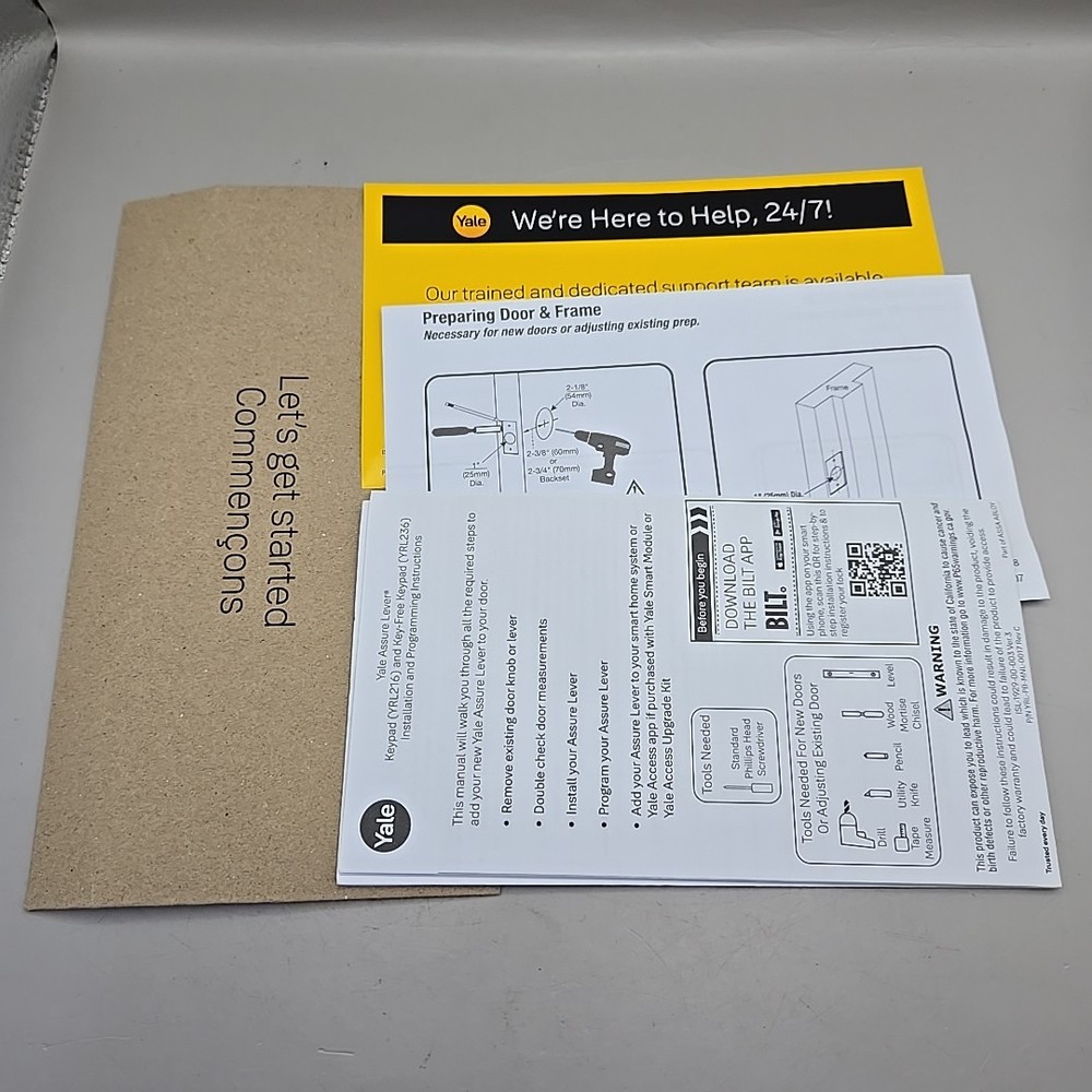 NEW Yale YRL216-ZW2-619 Keypad Deadbolt Door Lock With Key And Handles In Box, has all unused pieces in original box, can't see the battery door key but it may be in a sealed box, you can use any thin item to open it (I used a small screwdriver and it worked fine)