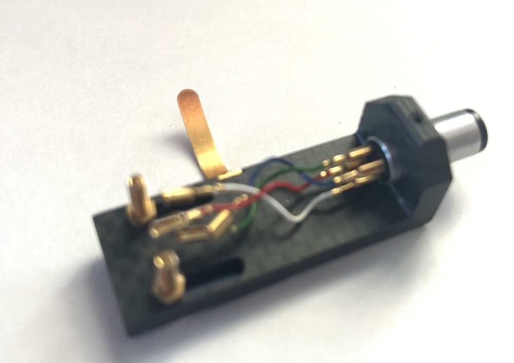 Yamomoto HS-4 carbon fiber headshell for sale. The shell is in very good operational and cosmetic condition. It has mounting screws and original Yamomoto leads. It is good for low or medium mass tonearm. The shell weights 10.7 gram. Sell:$125 Shipping inside USA is $6 Worldwide shipping is $19