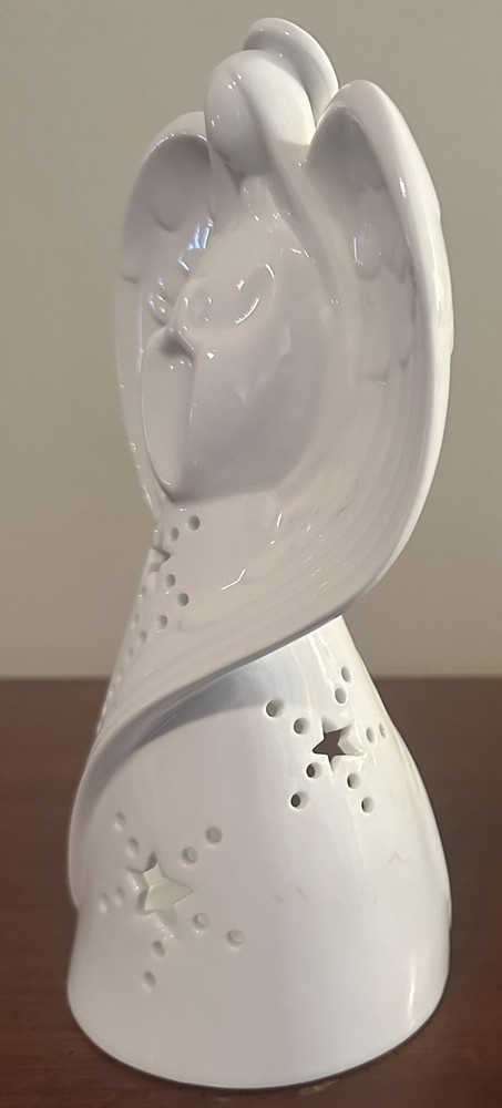 This beautiful Yankee Candle Angel Luminary Tea Light Holder is white porcelain standing at 9.25 inches tall. She is in excellent condition with no cracks, chips, or stains.