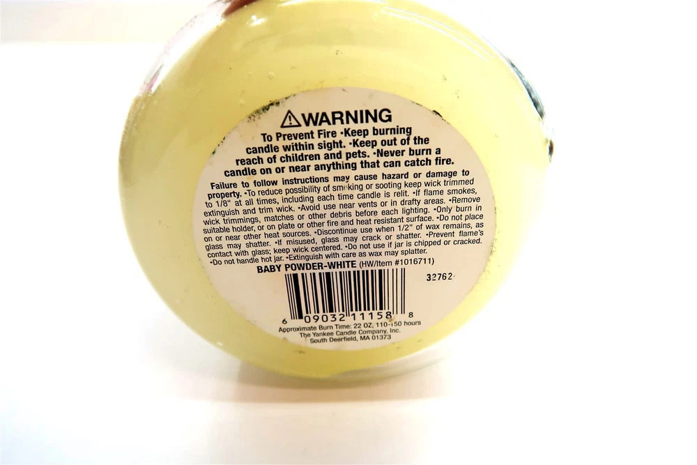 Yankee Candle BABY POWDER Housewarmer Large 22 oz Discontinued Scent with Box This eBay listing is for a new Yankee Candle Housewarmer candle in the BABY POWDER scent that I think is now discontinued. This is their large 22 oz size with the original glass lid and also comes with the original box that the candle came inside. Seller Location Reference - Box 100B BID IN CONFIDENCE – CHECK MY FEEDBACK! My goal is your satisfaction. I leave positive feedback right after the payment is received for all orders!! If you plan to leave anything less than positive feedback and 5 stars - please let me know so that I can work out any problems that you may have. I aim to please!! SHIPPING & HANDLING FOR US BIDDERS We ship ASAP upon payment as noted above within 1 business day 99% of the time!! We normally pack up your new treasures 2 - 3 times a day and ship using USPS and Fedex Ground so that you get your items in a timely fashion. As always - there is no charge for local pickup on any of my items!! SHIPPING AND HANDLING FOR INTERNATIONAL BIDDERS Import duties, taxes and charges are not included in the item price or shipping charges. These charges are the buyer’s responsibility. Please check with your country’s customs office to determine what these additional costs will be prior to bidding/buying.” THANK YOU AND HAVE A WONDERFUL DAY!! Powered by SixBit's eCommerce Solution