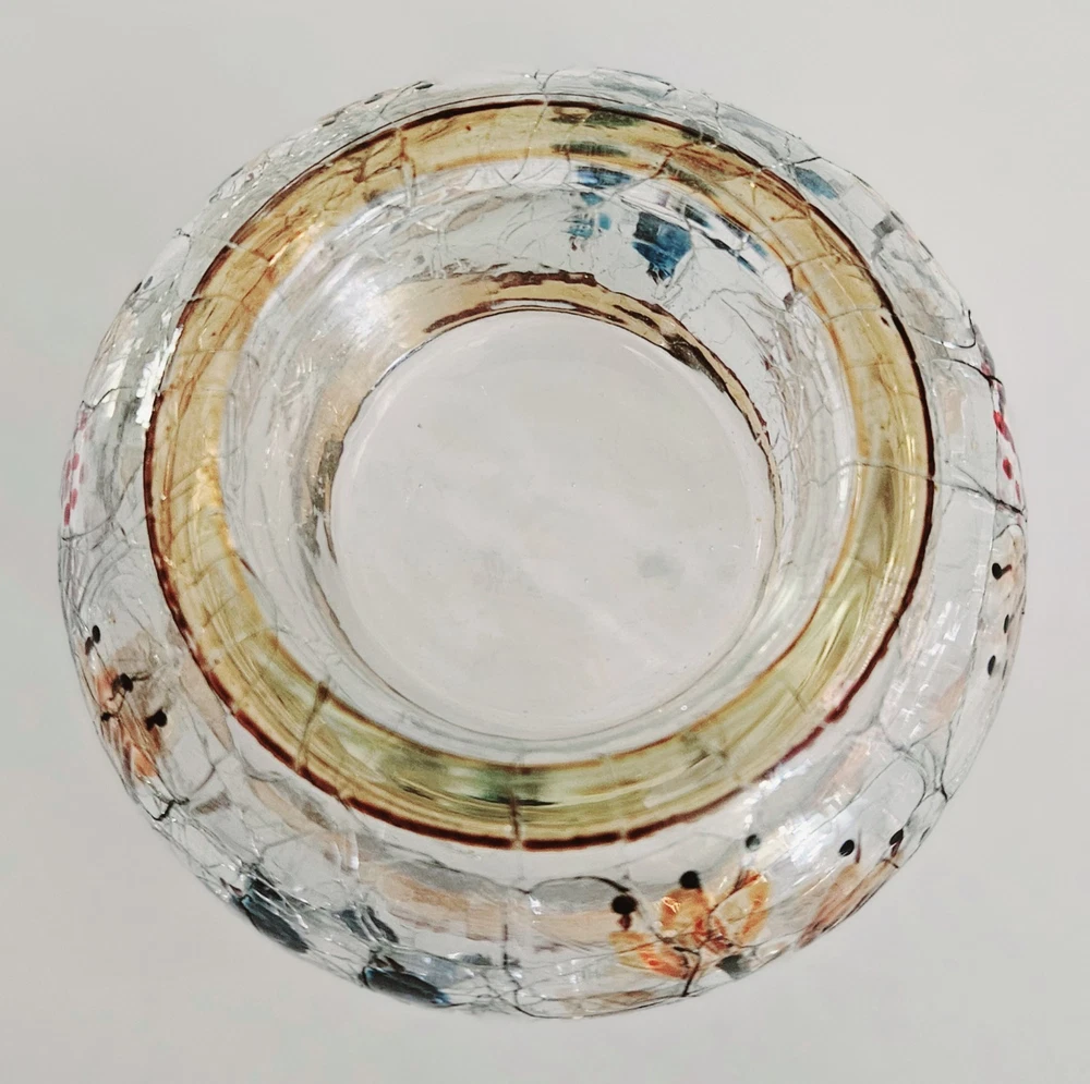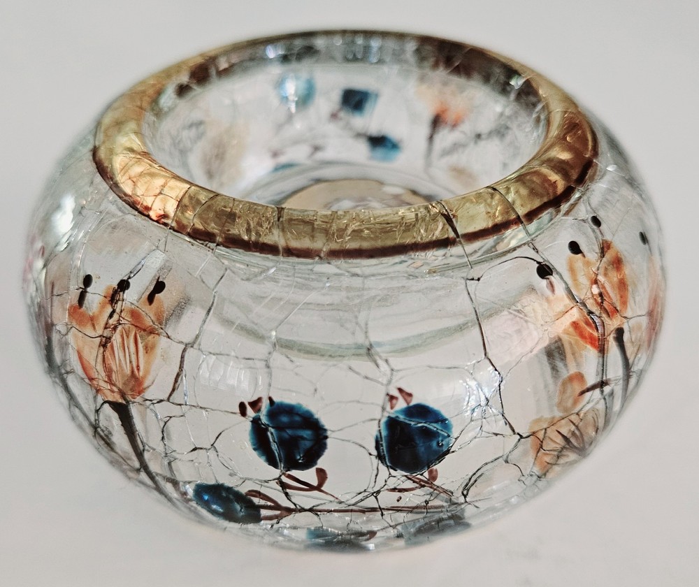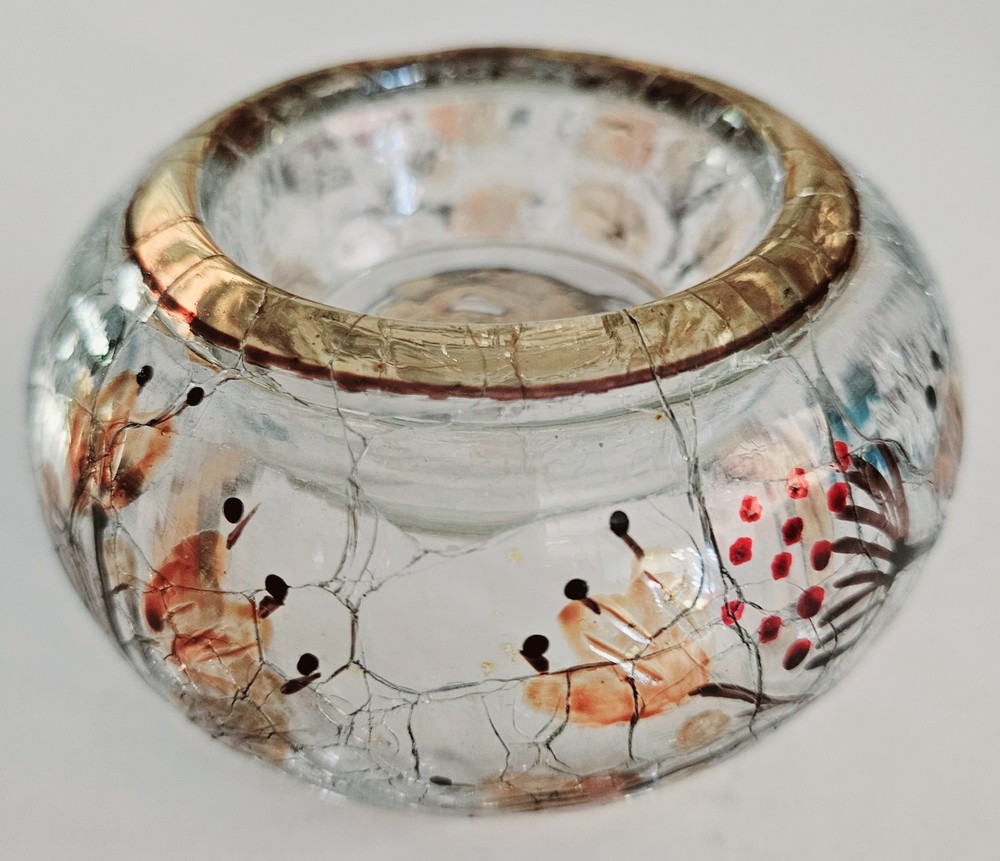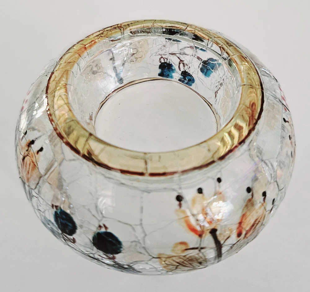 Yankee Candle hand painted autumn print crackle glass votive candle holder. 2"H x 4"W. No chips, cracks or damage. Excellent condition.