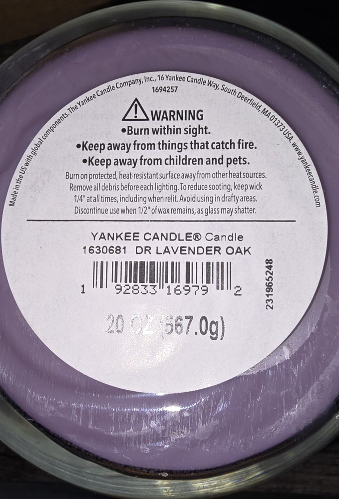 Yankee Candle - Dried Lavender & Oak - Double Wick 20 Oz. Jar. Condition is New. Shipped with USPS Ground Advantage.