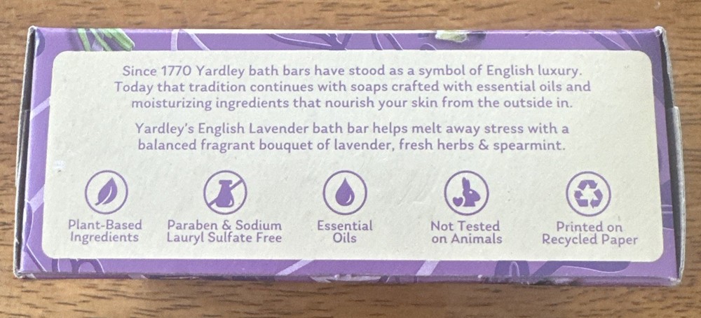 Yardley London English Lavender Nourishing Bath Bar - 6 Bars.