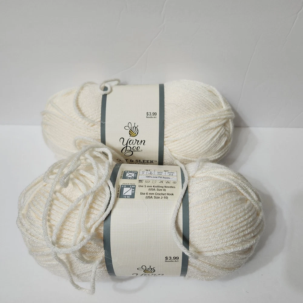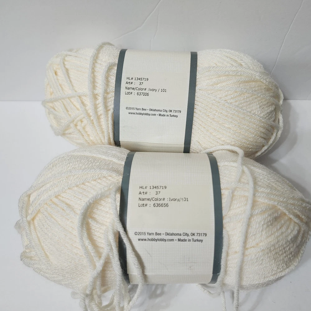 HomeYarn Bee Soft & Sleek Low Pill Fiber Yarn Color Ivory #101 Lot Of 2