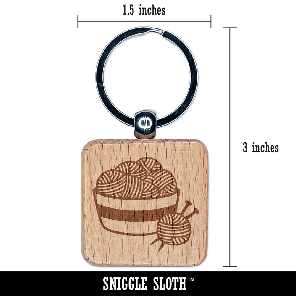 Yarn Knitting Engraved Wooden Square Keychain Charm Tag