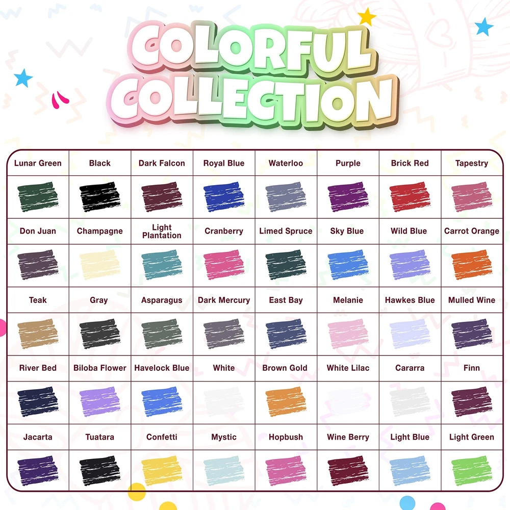 Yarn Skeins Assorted Colors Huge Lot Acrylic Wool Balls Knitting for Crocheting Features: Vibrant 40-Color Assortment - This yarn kit includes 40 unique 100% acrylic yarn skeins in rich hues, ideal for knitting, crocheting, and crafting projects. Enjoy 880 yards (22 yards per skein) of crafting potential with this 40-skein set. Soft and Lightweight - Crafted from 3 DK medium-weight yarn, this soft and sturdy material ensures a smooth crafting experience. Its gentle texture glides effortlessly through needles and hooks, making it suitable for extended crafting sessions. Ideal for Amigurumi & Crafts - Bring colorful designs to life with this vibrant, compact set of multicolor yarn. It's the perfect choice for creating adorable amigurumi, coasters, scarves, bags, and other small creations. Machine Washable for Easy Care - This crocheting yarn is designed for long-lasting durability while maintaining its vibrant color even after multiple washes. Simply machine wash and tumble dry on low, but avoid bleach or ironing for best results. Thoughtful Gift for Crafters - A great choice for beginners or experienced crafters, this yarn bulk offers endless creative possibilities. It makes an ideal gift for birthdays, holidays, or kids eager to learn knitting and crocheting. SHIPPING We are always working hard to ensure your package arrives as soon as possible. Please understand that some factors like weather, high postal traffic, and the performance of shipping companies are outside of our control. We offer free shipping to the lower 48 states and ship within 3 business days of payment, usually sooner. We do not accept P.O. Boxes. Please provide a physical address.
