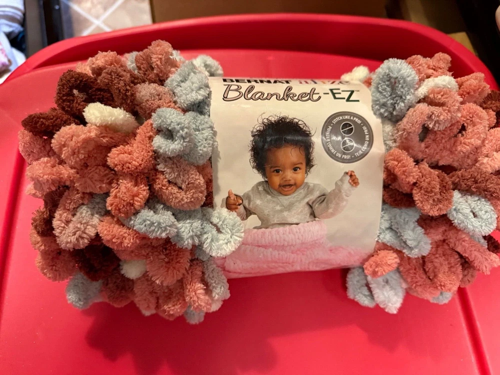 1 Skein of Yarnspirations Bernat Alize Blanket EZ Yarn, Color Warm Clay. From the Yarnspirations website: Time to get crafty with Bernat Alize Blanket-EZ! This yarn features unique preformed loops. With no needles or hooks required, Blanket-EZ projects are completed faster and easier than traditional knitting.