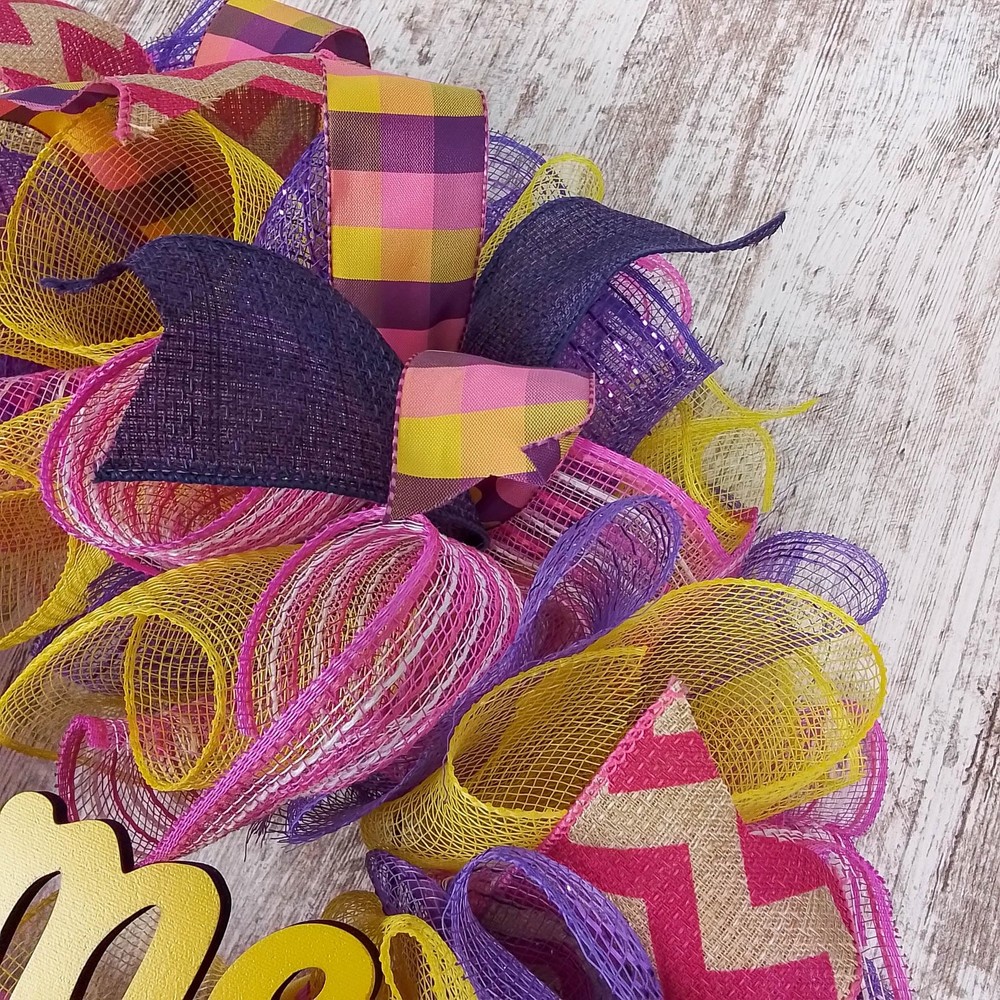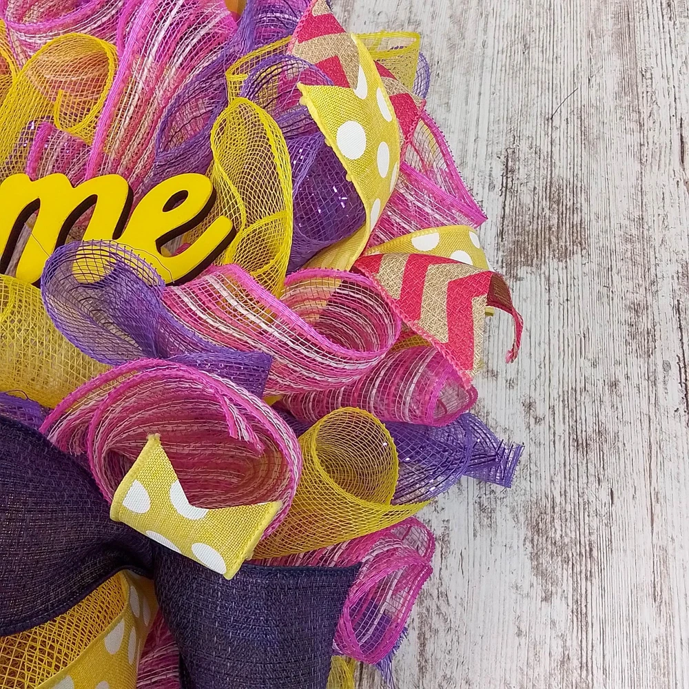 This vibrant wreath adds a cheerful pop of color to any front door! The mix of purple, pink, and yellow with the cute welcome sign makes it so inviting. Love that it's customizable—perfect for adding a personal touch. The quality is fantastic, and it looks even better in person. Highly recommend for a bright, welcoming vibe all year round!