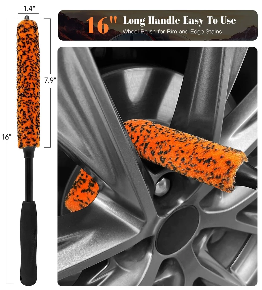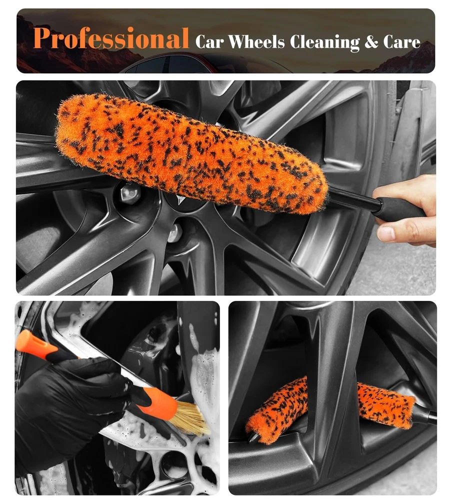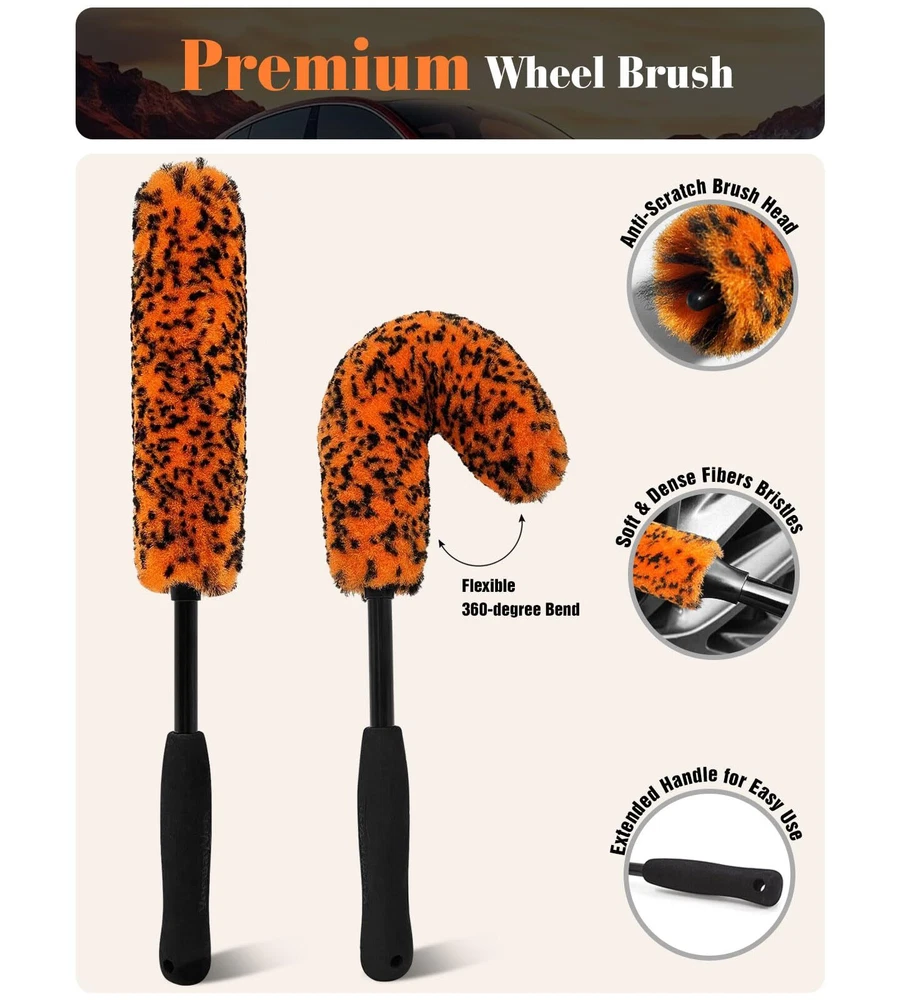 WHEEL BRUSHES FOR CLEANING WHEELS: Our 360° Bendable wheel brush for car detailing are suitable for all shapes of wheels or spokes cleaning, the large brush measures length is 16 inch, the diameter is 2.4" wide, the small one has the same 16"-length and diameter is 1.4" fibers. DEEP CLEANING: Our wheel brush kit equipped with boars hair detailing brush, differ from other brushes with hard PP bristles, our detaing brush set made of premium boar bristles, which are more delicate to clean without scratches, the elbow connector is easy to reach narrow or tight space. EFFICIENTLY & QUICKLY: YeewayVeh rim brush is made premium soft synthetic wool fibers, the longer bristles than others can help penetrate deep entire inner barrel of the wheel for quickily thorough cleaning, tire brushes for cleaning tires is a convenient way to keep your rims clean. ERGONOMIC FOAM GRIP: Car wheel brush with ergonomic EVA foam grip, comfortable and effortless, rim cleaning brushes designed with rubber lid for fiber stable and durability, it pairs perfect with a nice degreaser or wheel cleaner. WHAT YOU GET: The package included 1 x 2.4-inch diameter Bendable wheel Brush, 1 x 1.4-inch diameter Bendable Rim Brush, 1 x Detailing Brush. wheel cleaning kit is the entry level brushes for tire maintenance and makes cleaning wheels easier and faster.