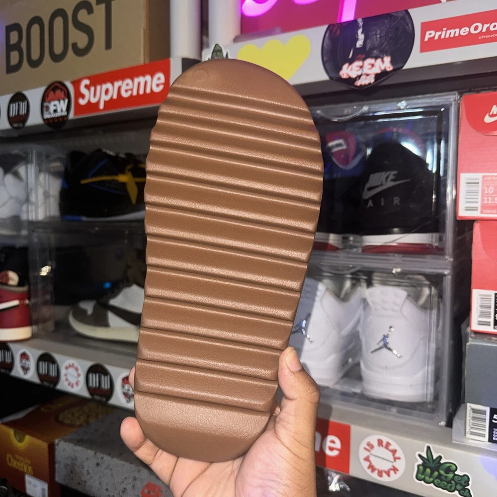 Elevate your sneaker game with these Yeezy Slide Flax in size 10. The brown flax upper material is perfect for any athletic look. These sneakers are designed for men and are perfect for any casual or athletic occasion. The Yeezy brand is known for its unique and stylish designs, and these sneakers are no exception. With a comfortable fit and trendy design, these Yeezy Slide Flax sneakers are a must-have for any sneakerhead. The sneakers are categorized under Athletic Shoes, Men's Shoes, Men, and Clothing, Shoes & Accessories. The Yeezy Slide Flax model is perfect for anyone looking for a stylish and comfortable sneaker. DS - OG ALL