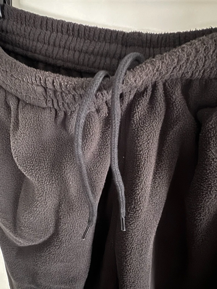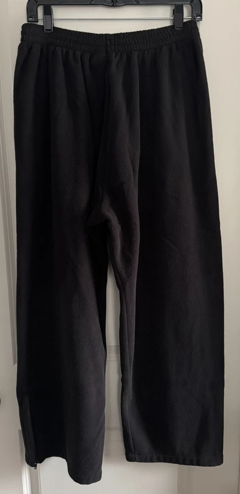 New in the bag with drawstring and zippers on the bottom. The Yeezy YZY x GAP H10 Polar Fleece Pants in black, size M, are a designer collaboration between Kanye West and GAP. These relaxed-fit sweatpants are made of polyester and cotton fleece, offering comfort and a heavyweight feel. The pants feature a straight leg style and are suitable for activewear, making them ideal for activities like gym training, track and field, and basketball. Perfect for the winter, fall, and spring seasons, these Yeezy pants combine style and functionality for a trendy addition to any activewear wardrobe.