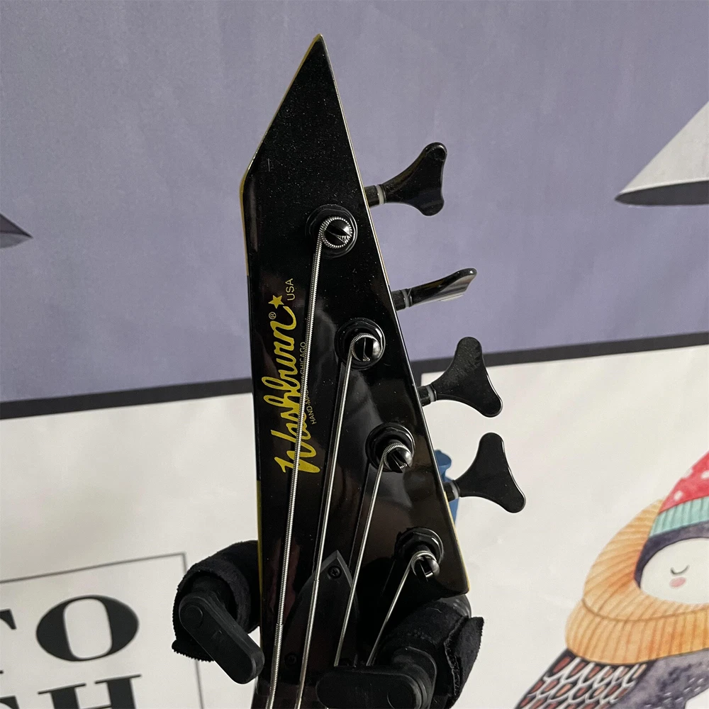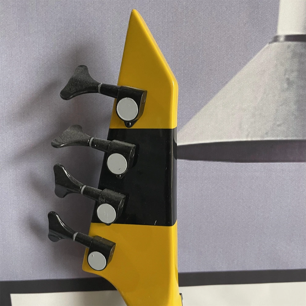 Yellow 4 String Electric Bass Guitar Solid Basswood Body Maple Body Black Part